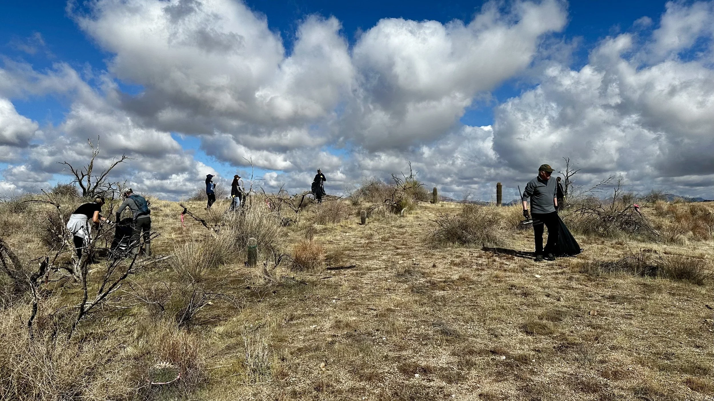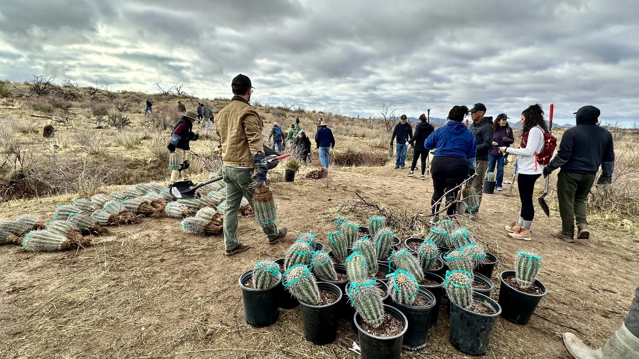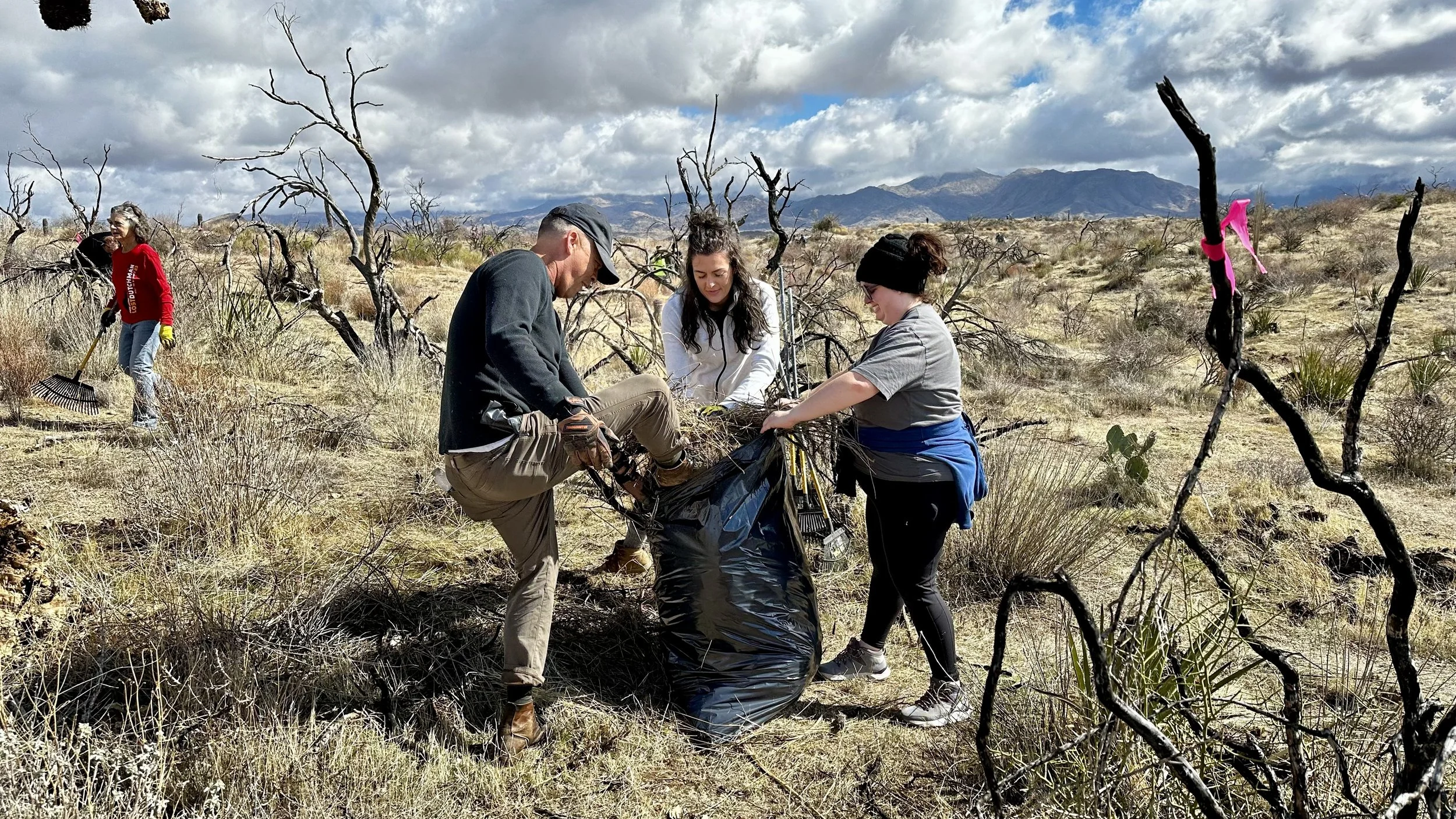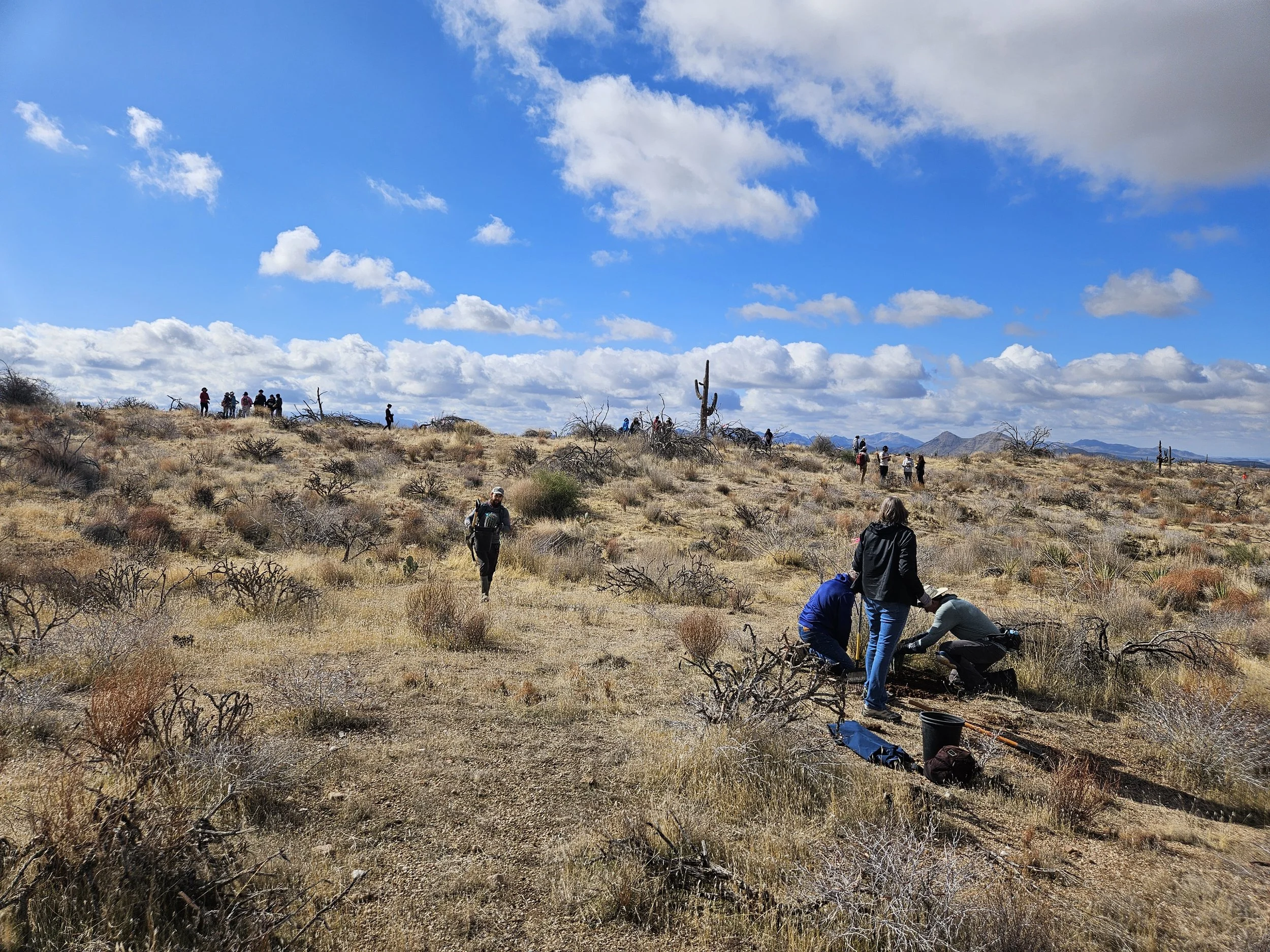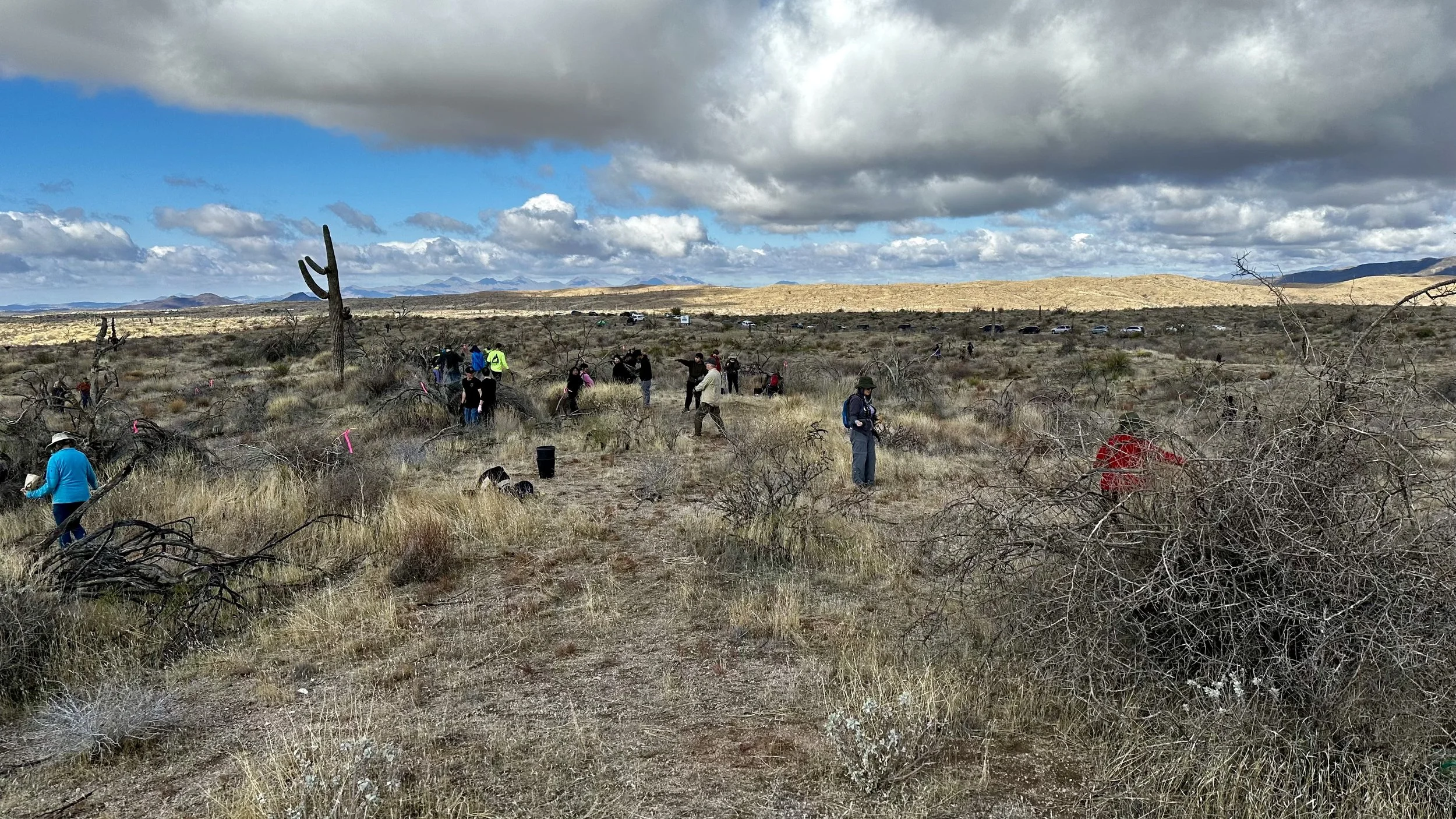 74 volunteers, including 4 youth volunteers, helped us plant 106 saguaros, spread 25 pounds of Sonoran Desert wildflower seed mix, & bag invasive grasses from a section of the burn scar.