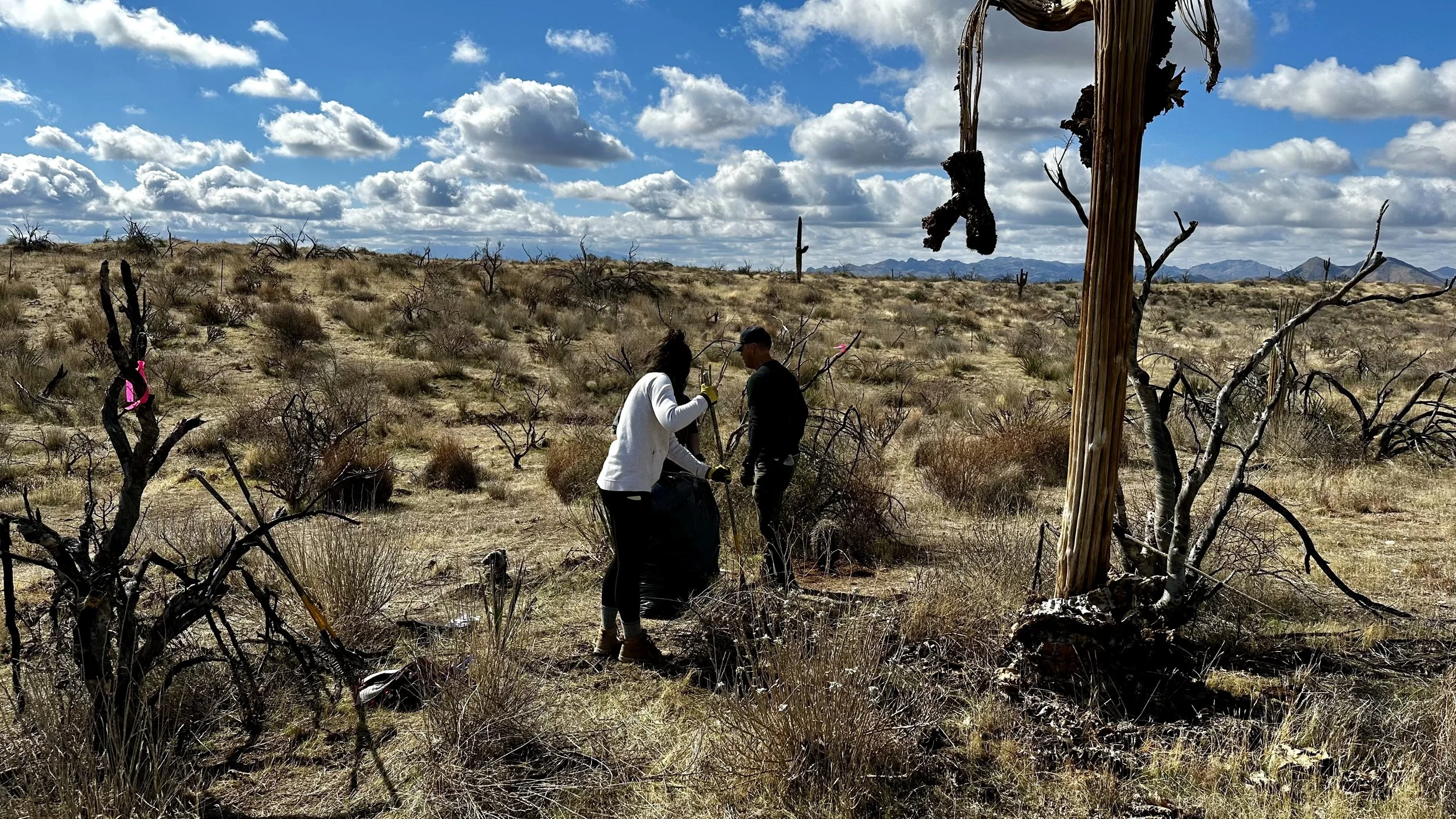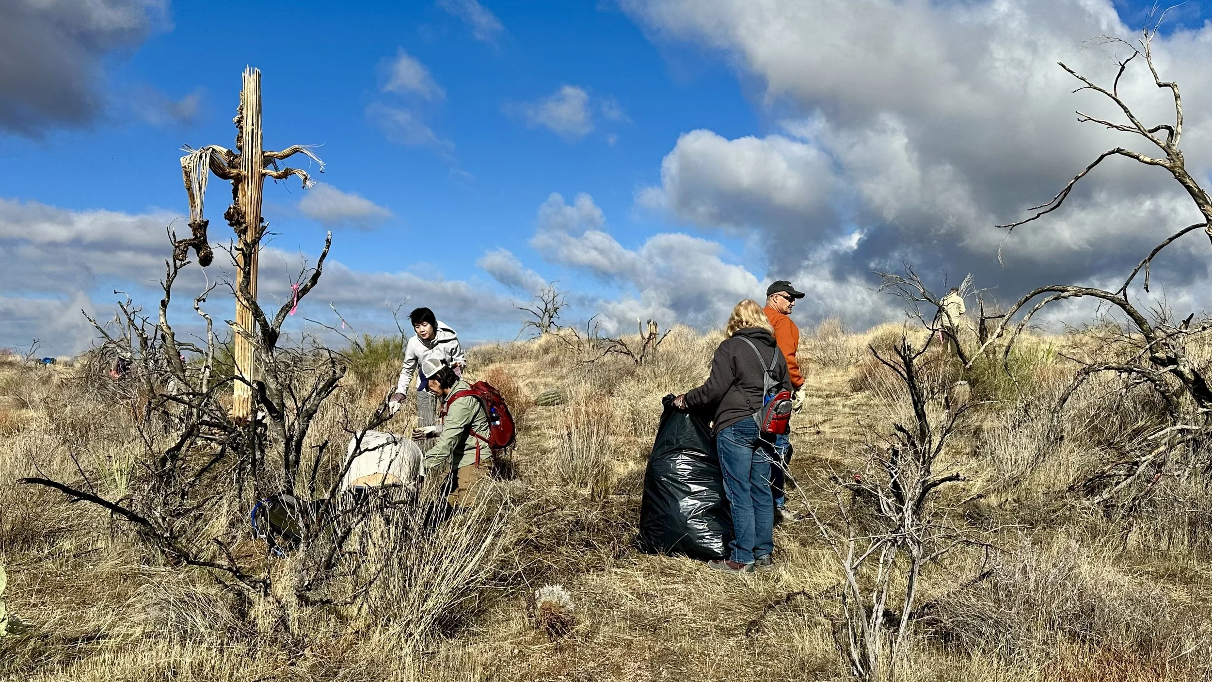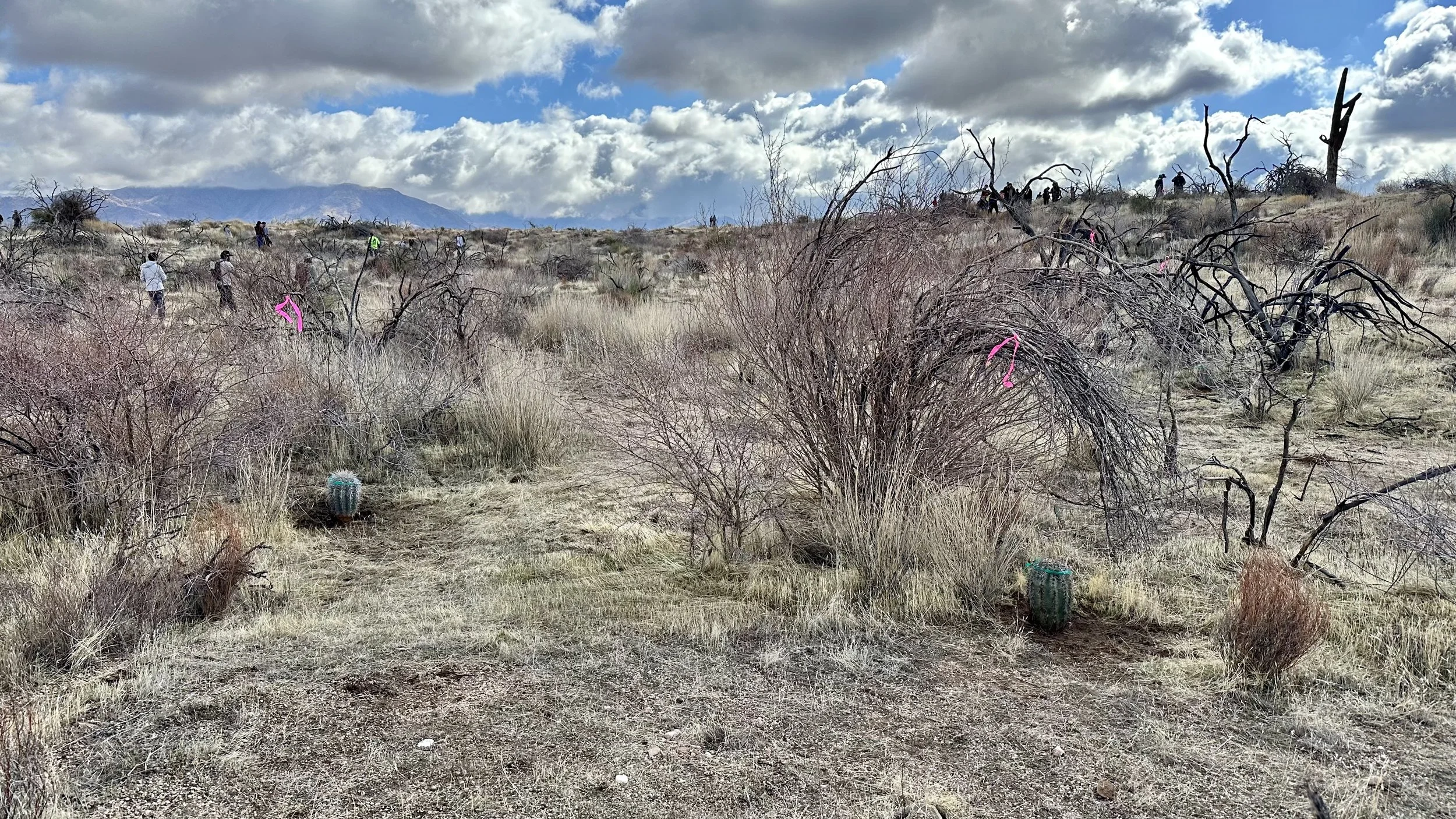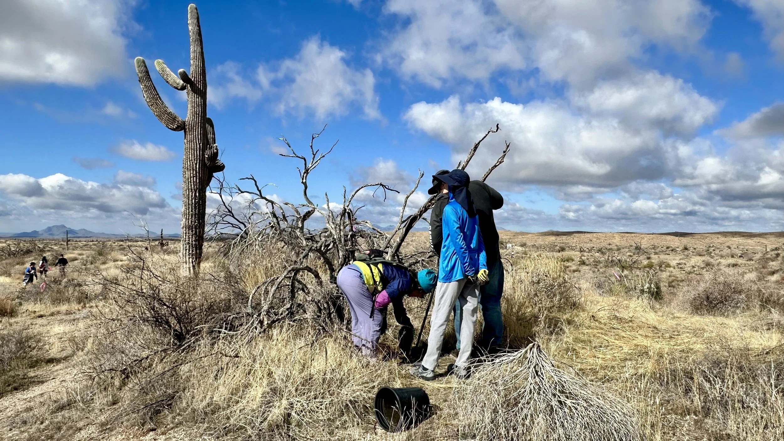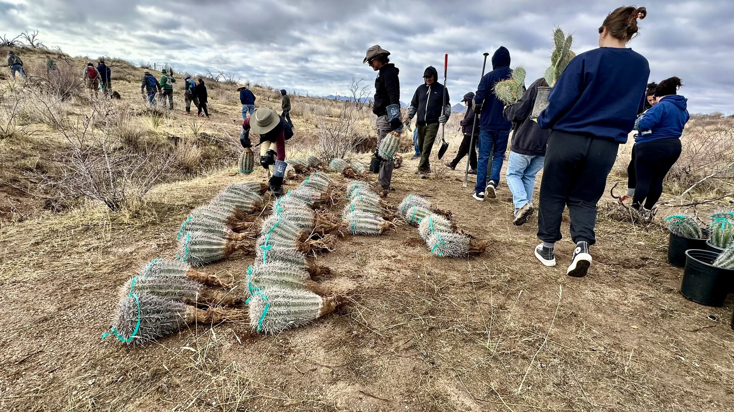 74 volunteers, including 4 youth volunteers, helped us plant 106 saguaros, spread 25 pounds of Sonoran Desert wildflower seed mix, & bag invasive grasses from a section of the burn scar.