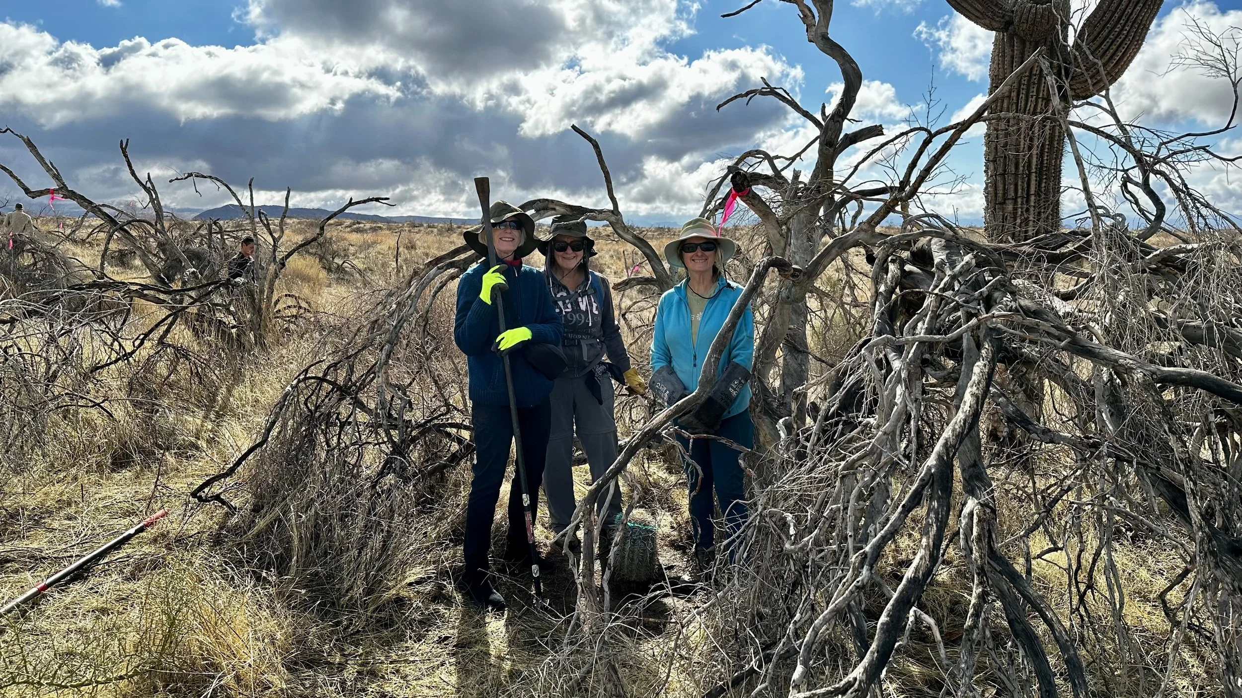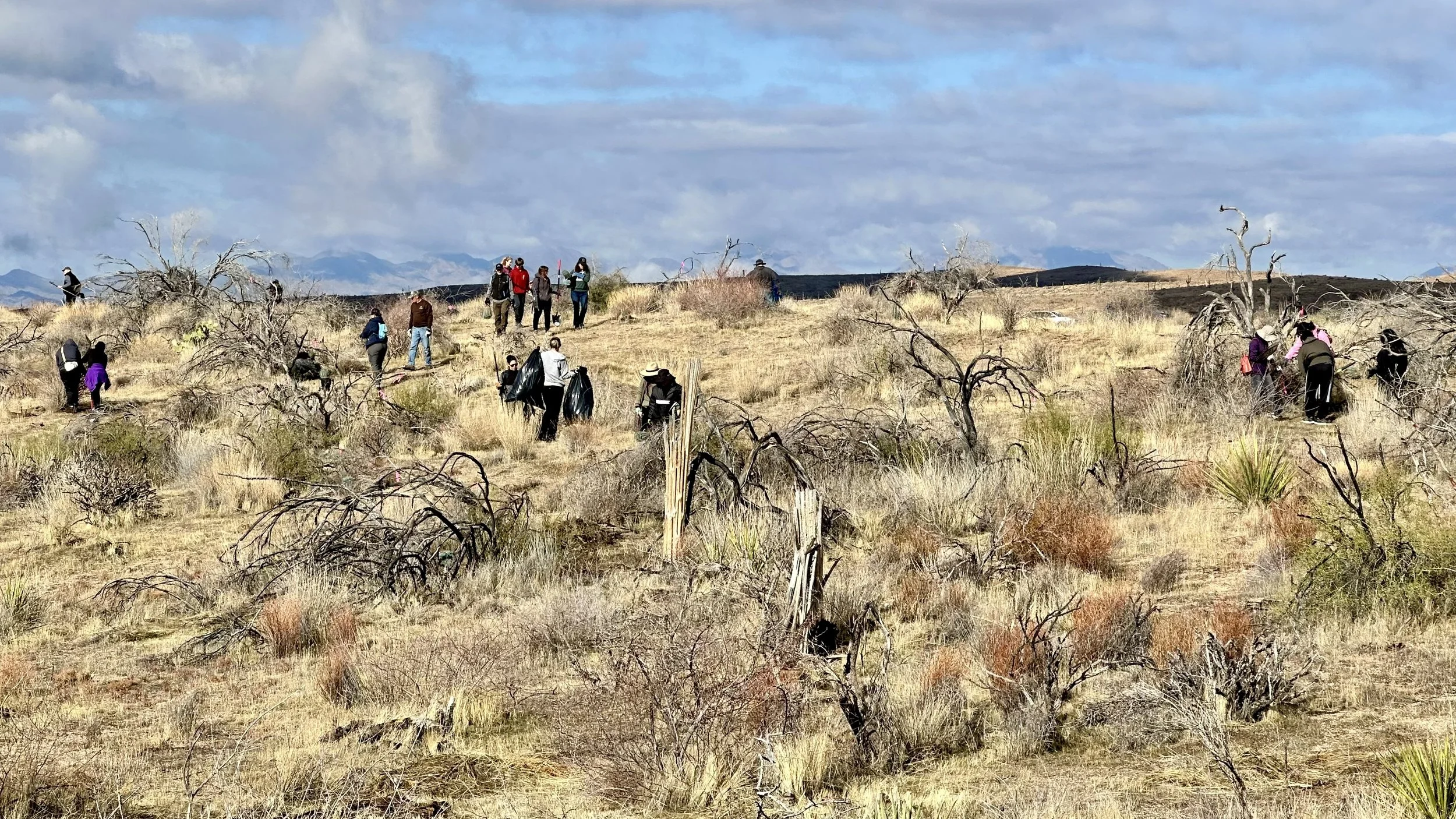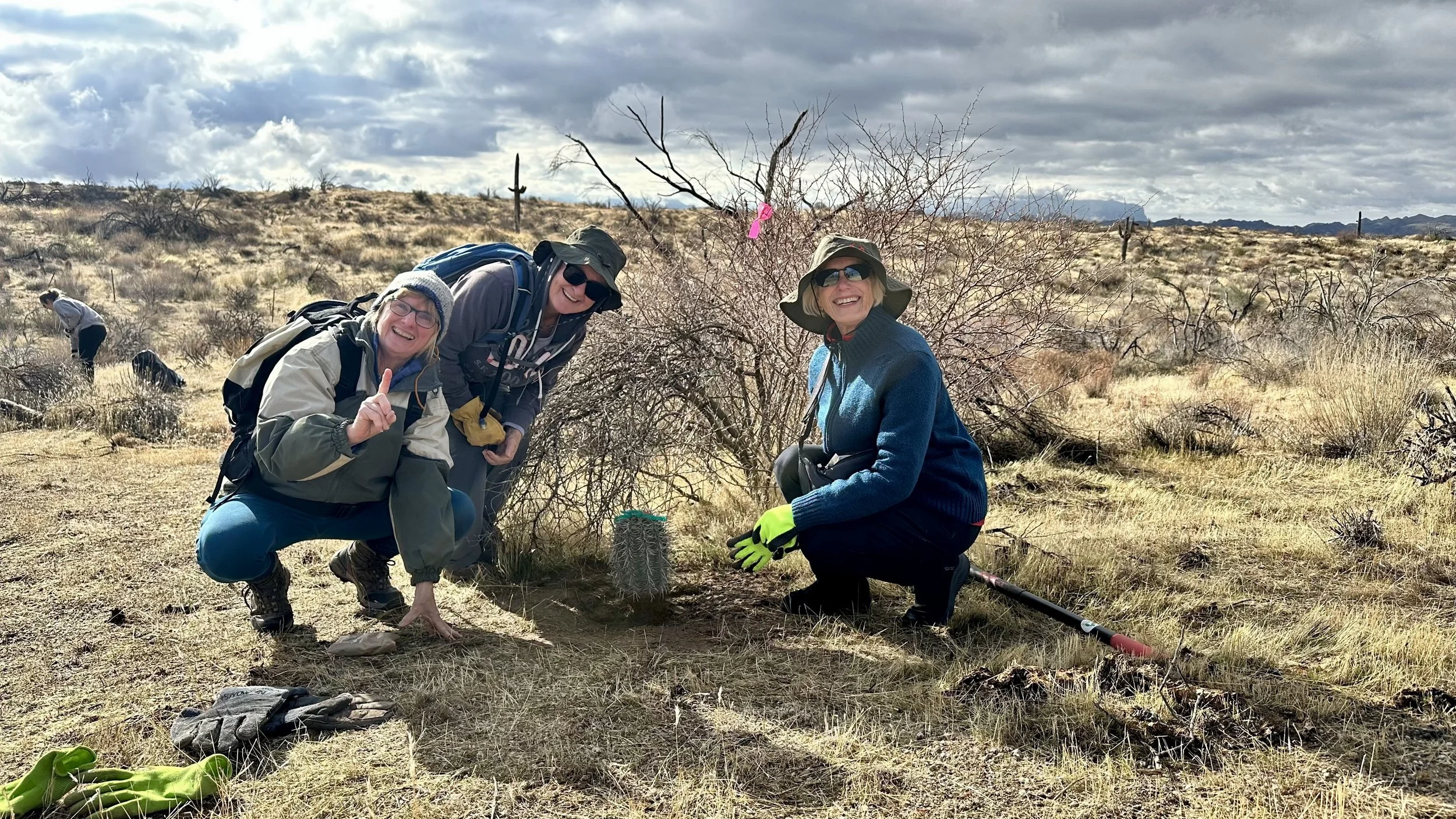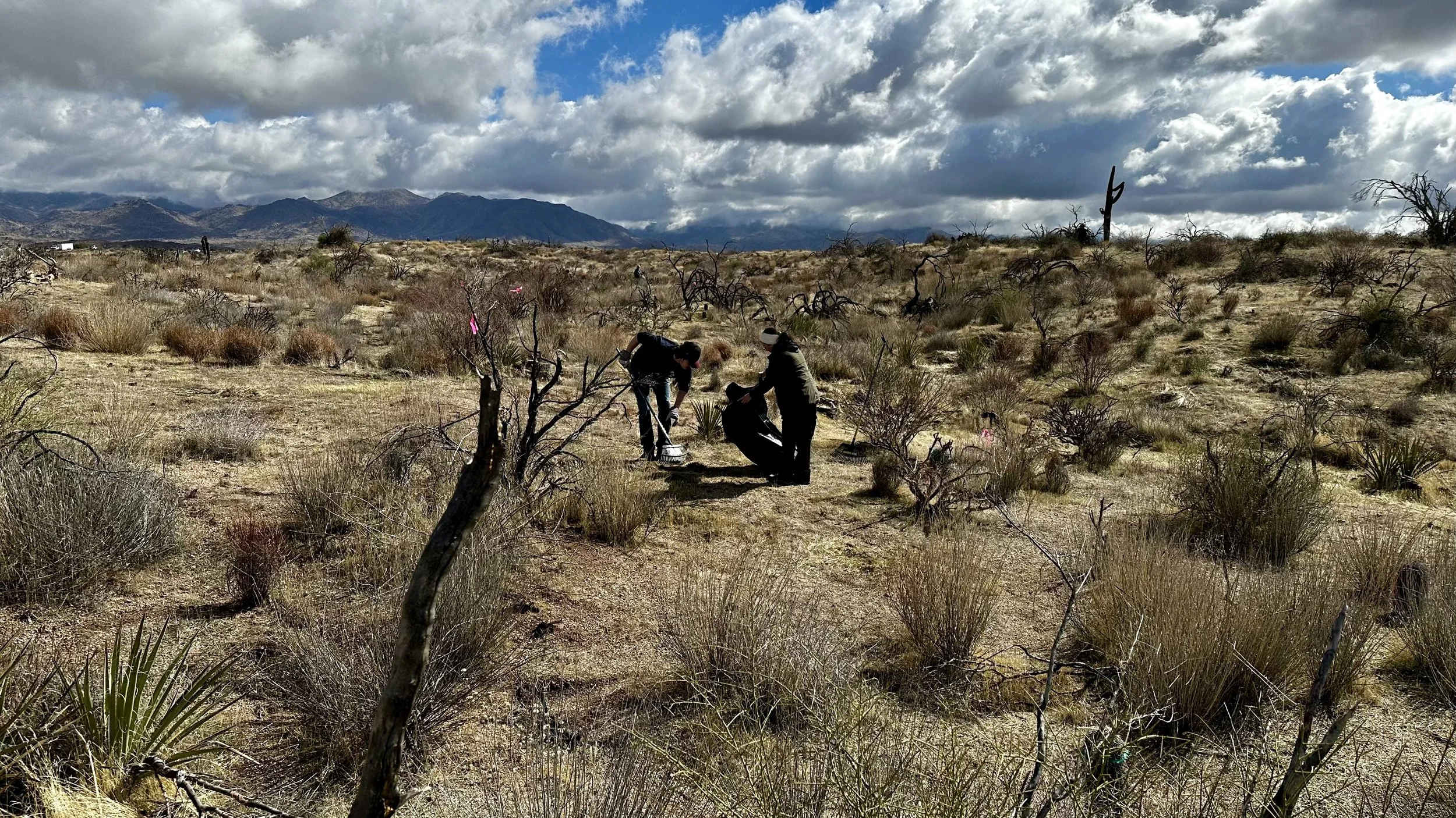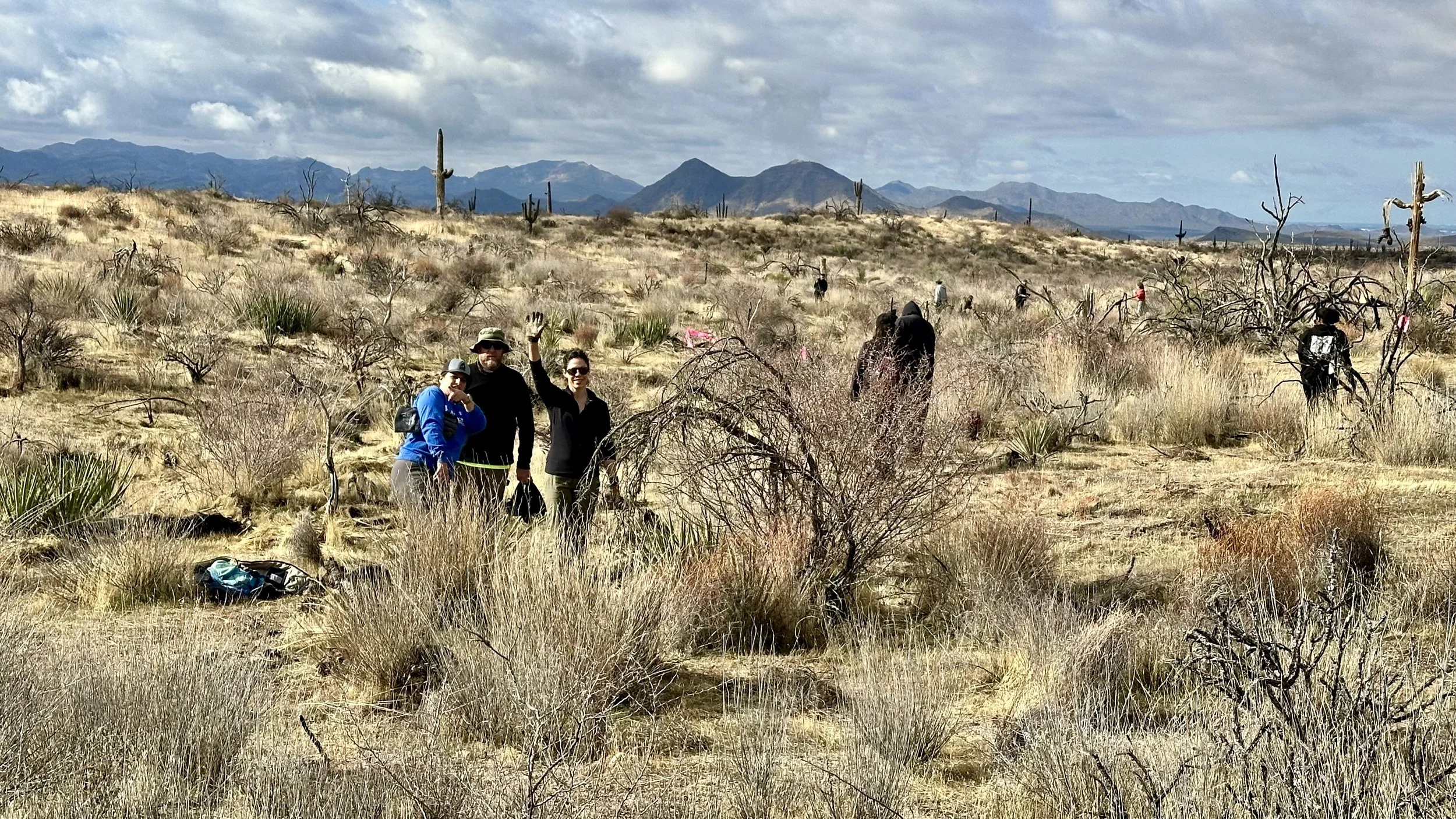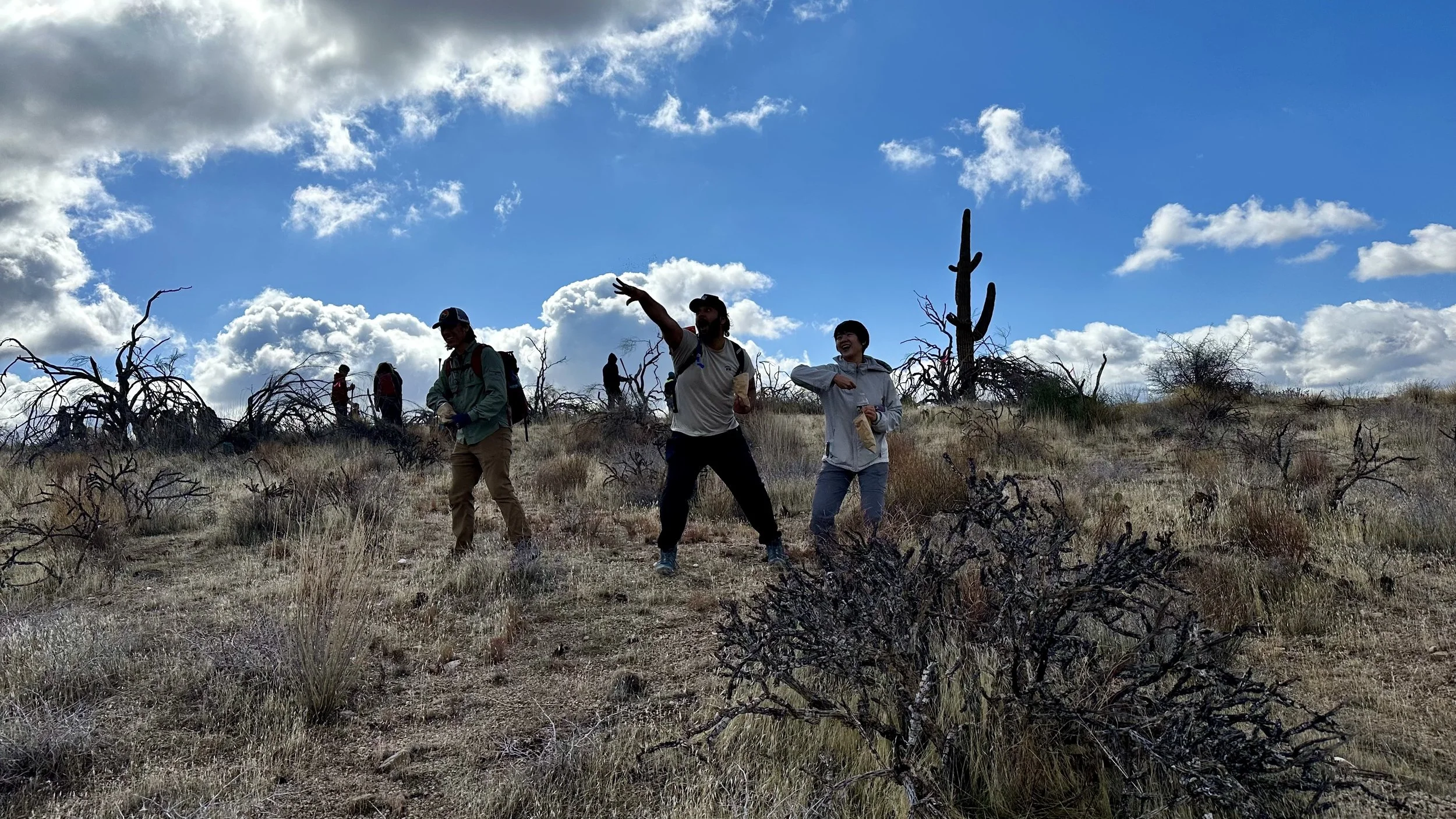 74 volunteers, including 4 youth volunteers, helped us plant 106 saguaros, spread 25 pounds of Sonoran Desert wildflower seed mix, & bag invasive grasses from a section of the burn scar.