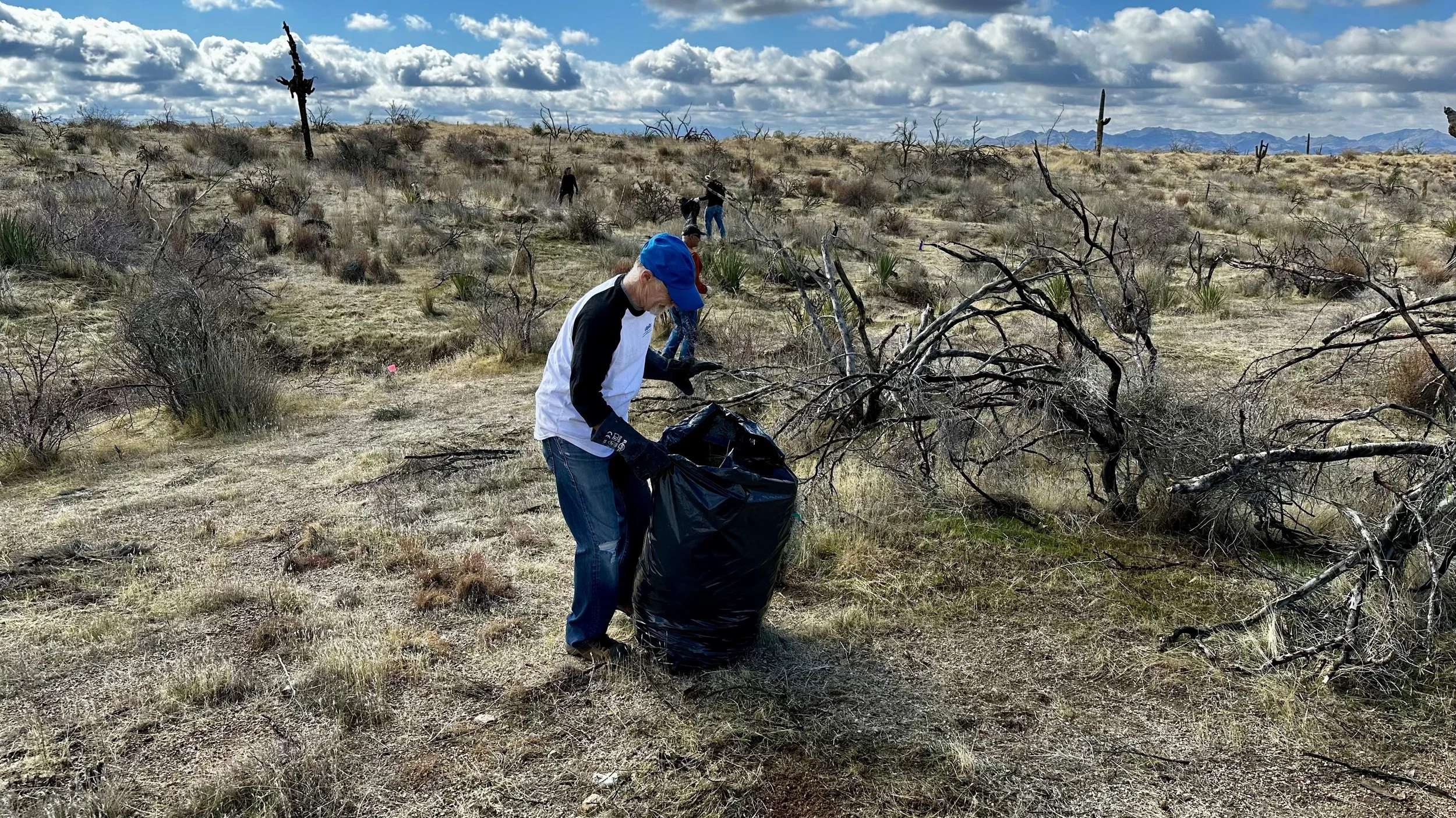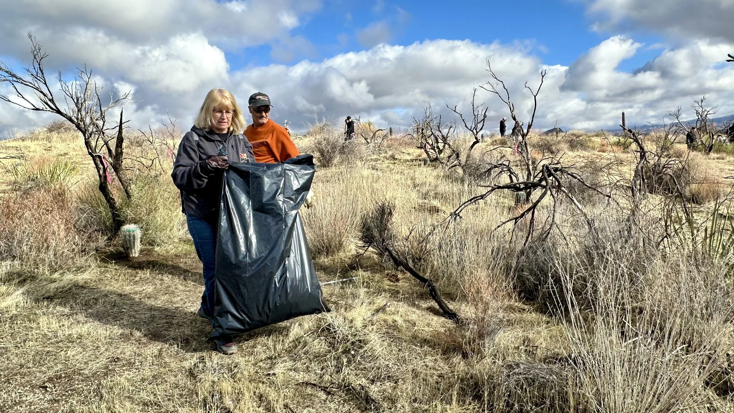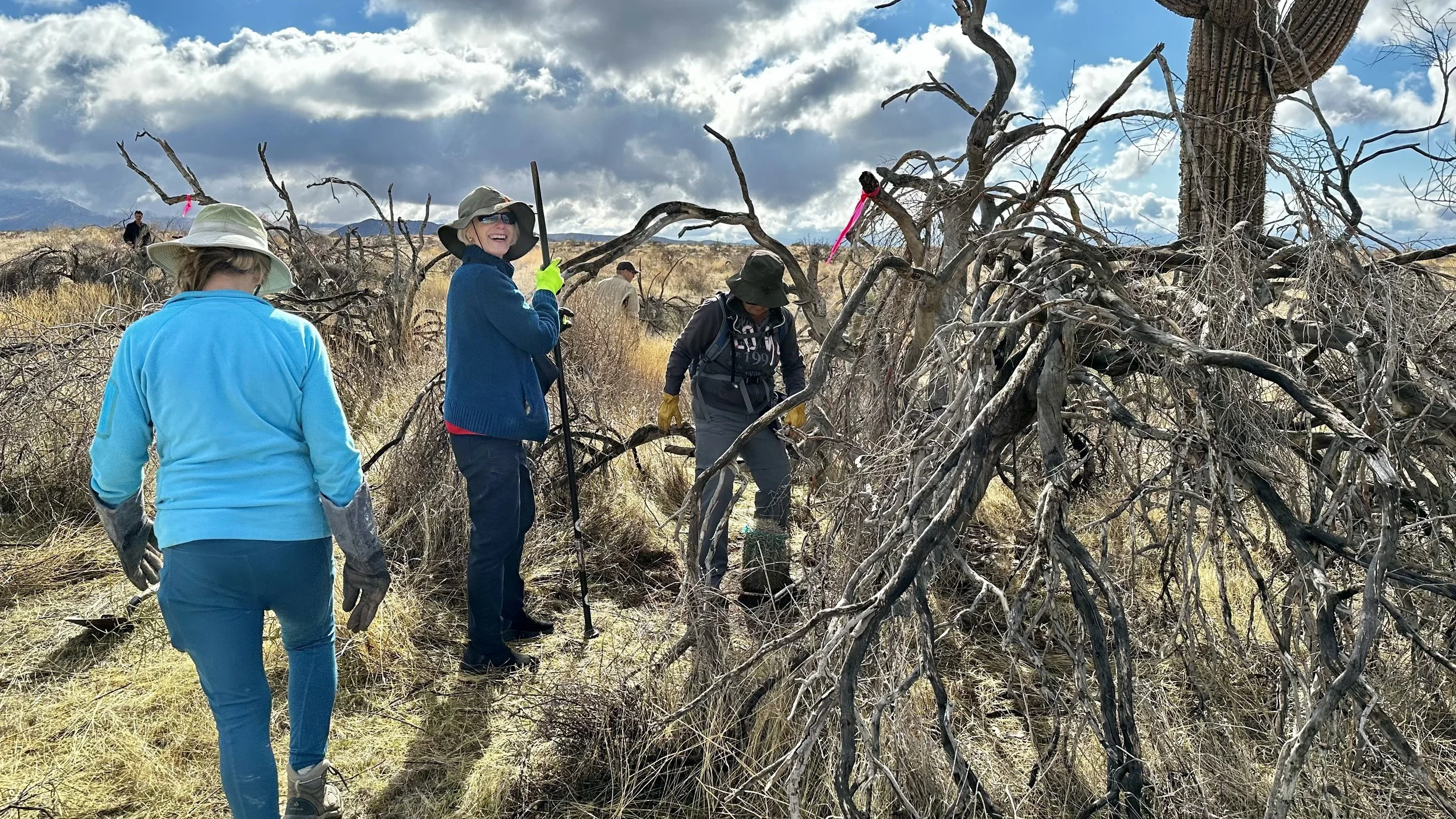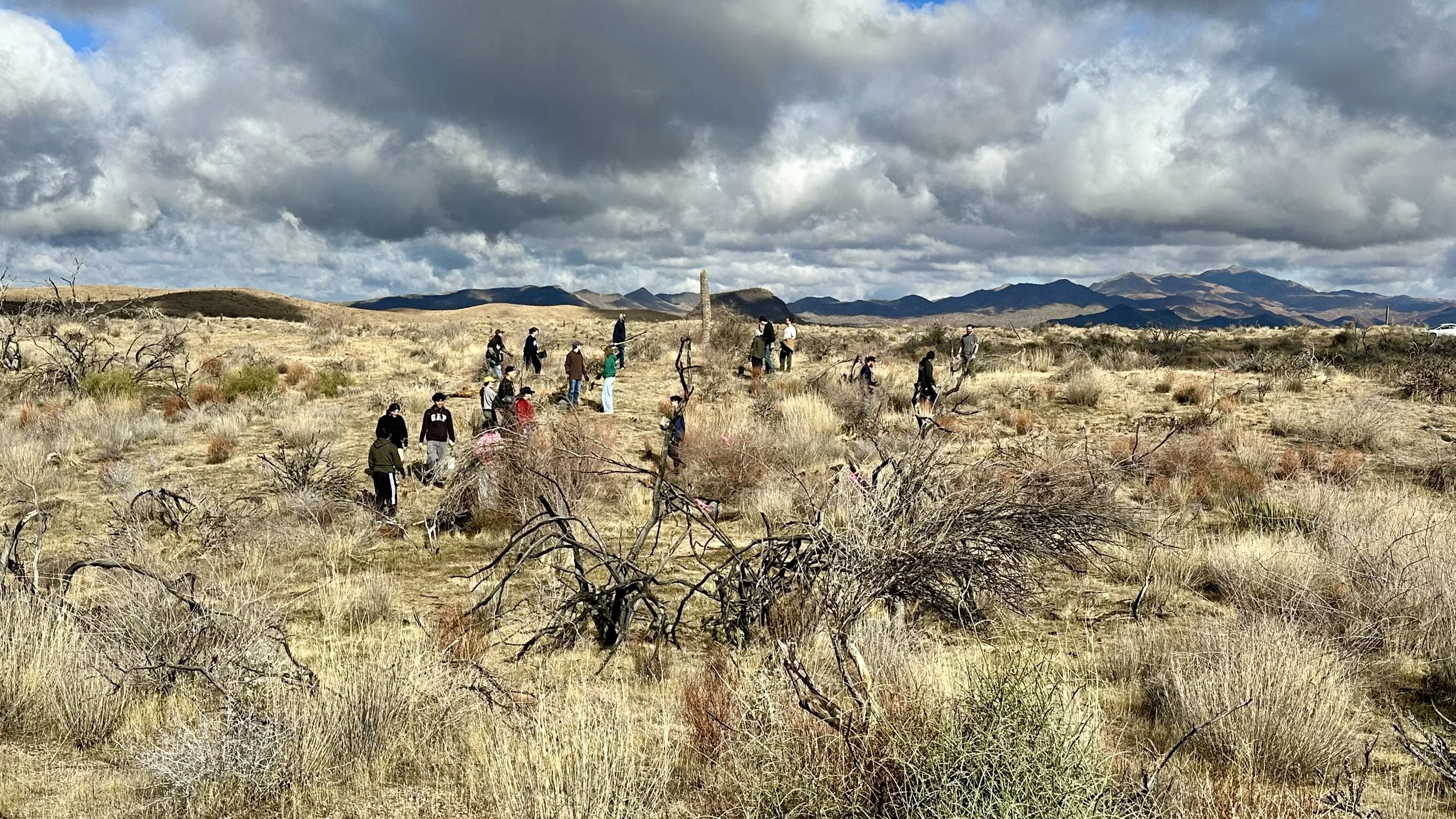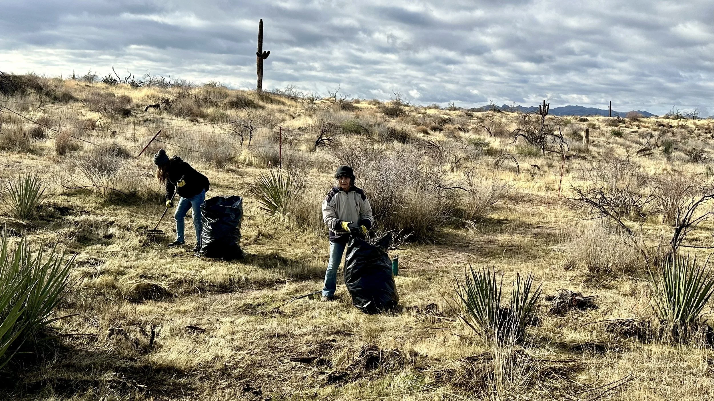74 volunteers, including 4 youth volunteers, helped us plant 106 saguaros, spread 25 pounds of Sonoran Desert wildflower seed mix, & bag invasive grasses from a section of the burn scar.