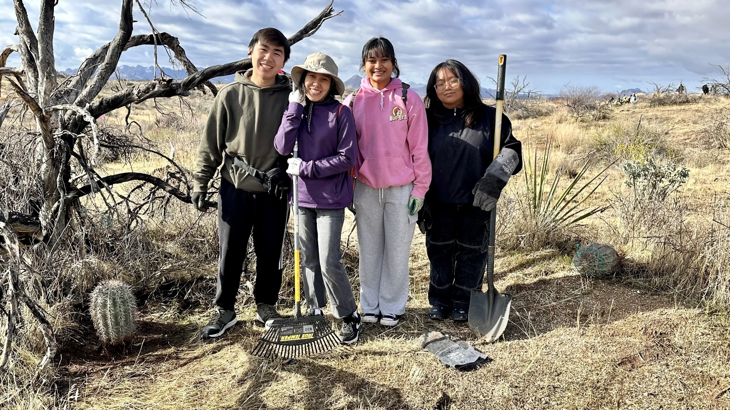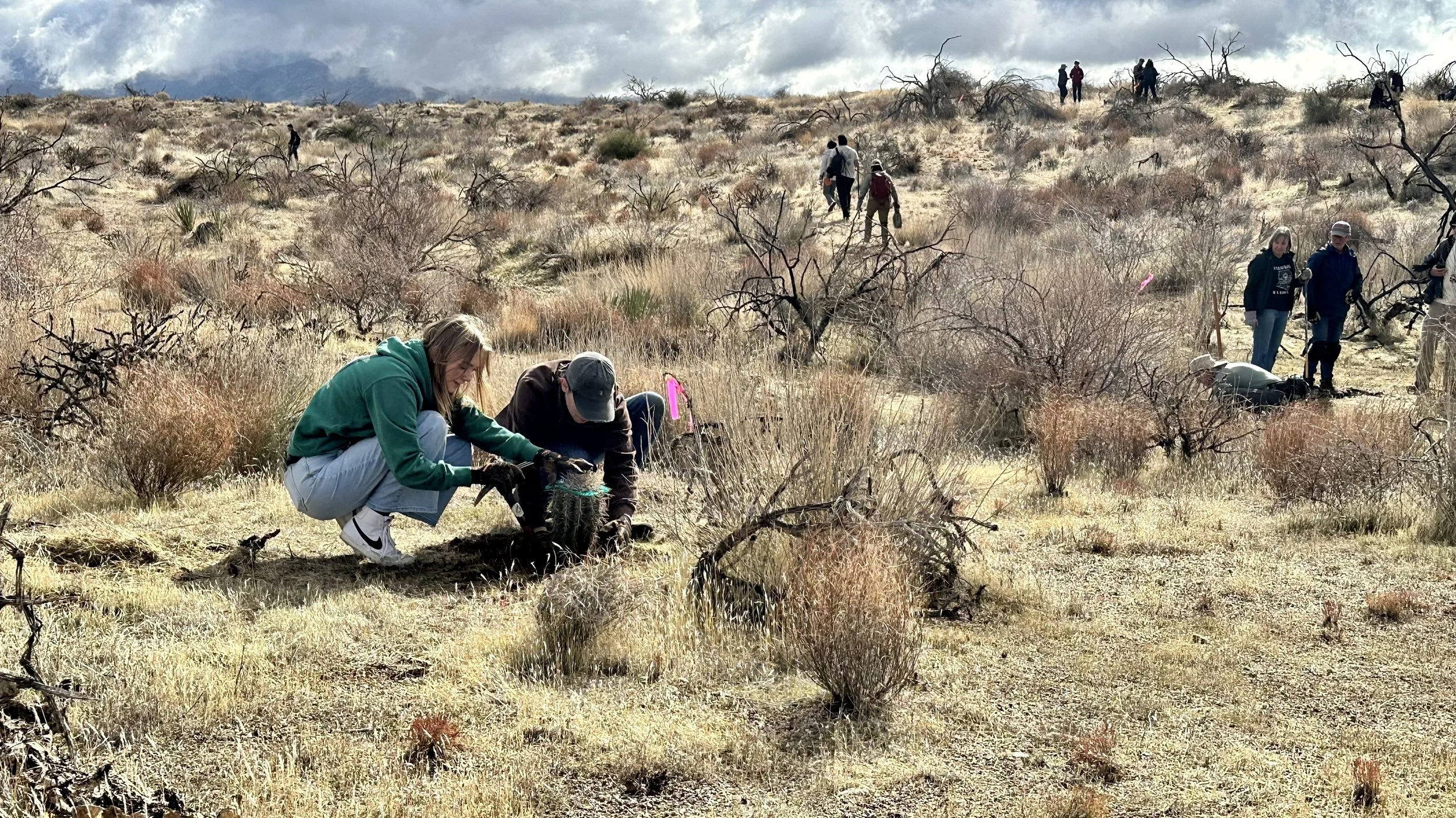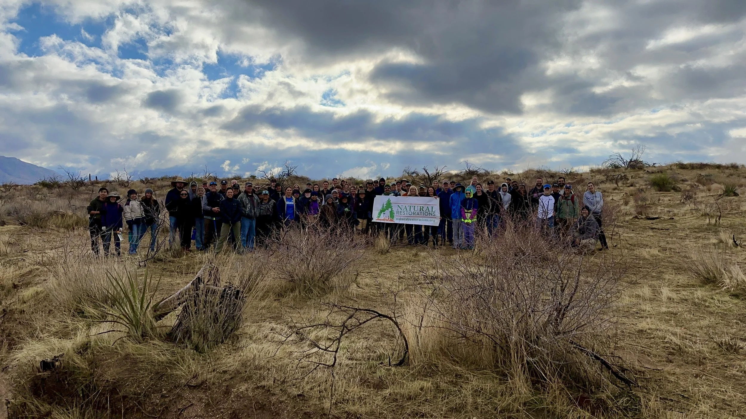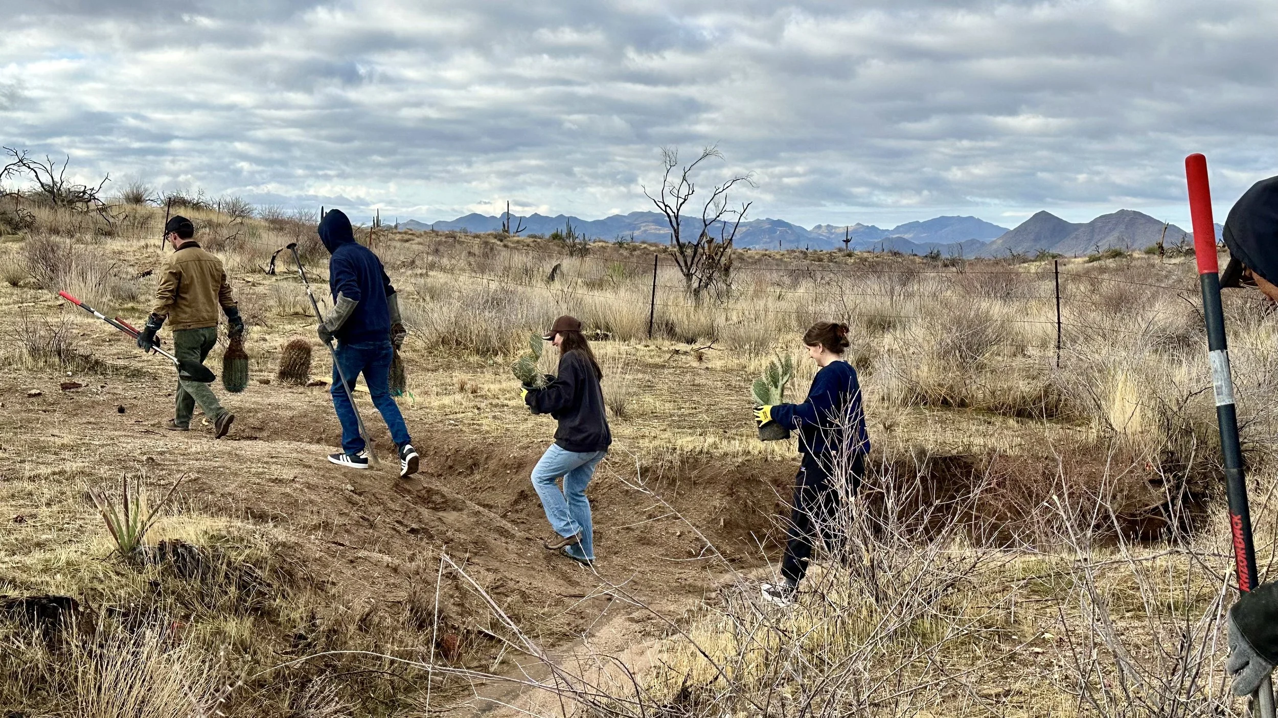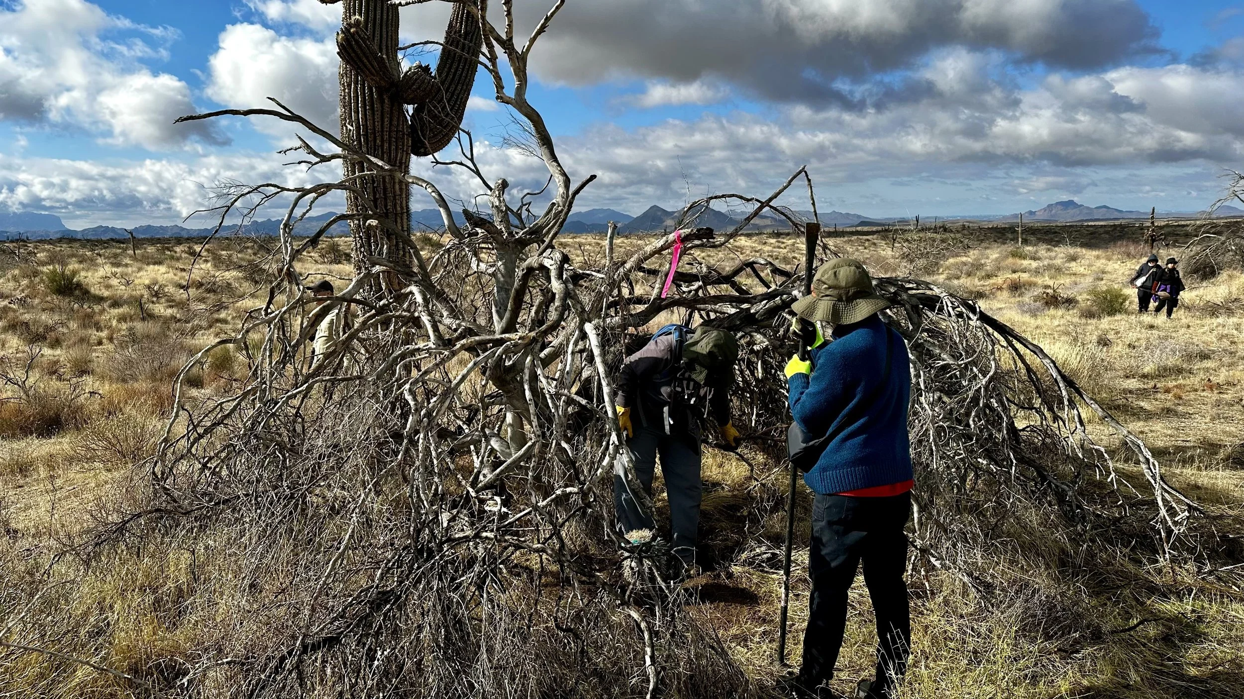 74 volunteers, including 4 youth volunteers, helped us plant 106 saguaros, spread 25 pounds of Sonoran Desert wildflower seed mix, & bag invasive grasses from a section of the burn scar.