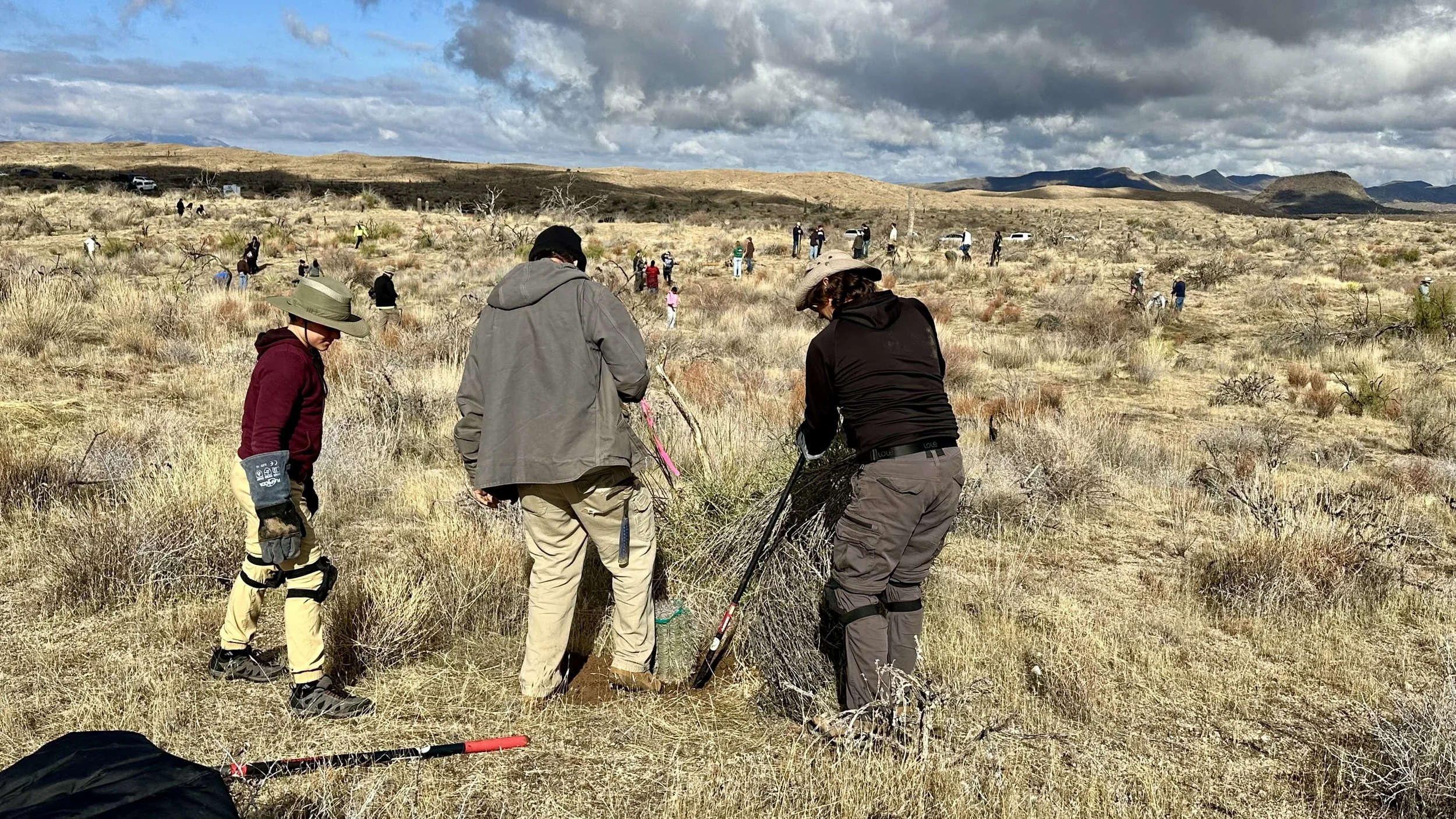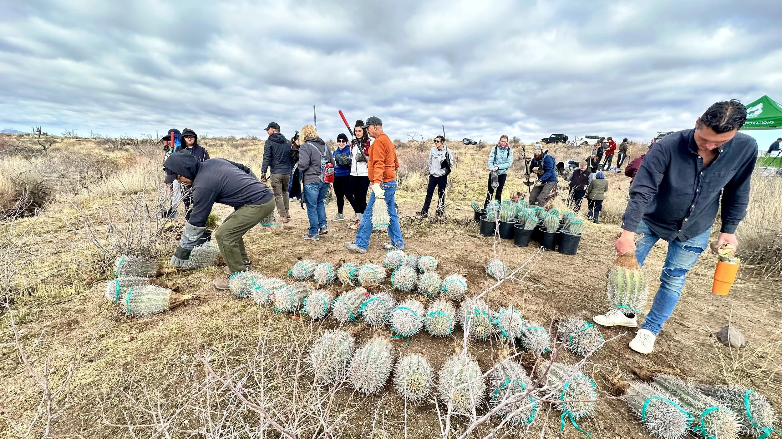 Our Dedicated Restoration Team walked volunteers through a step-by-step demonstration on the process of planting a saguaro and setting it up for the best chance of long-term survival before everyone started planting.