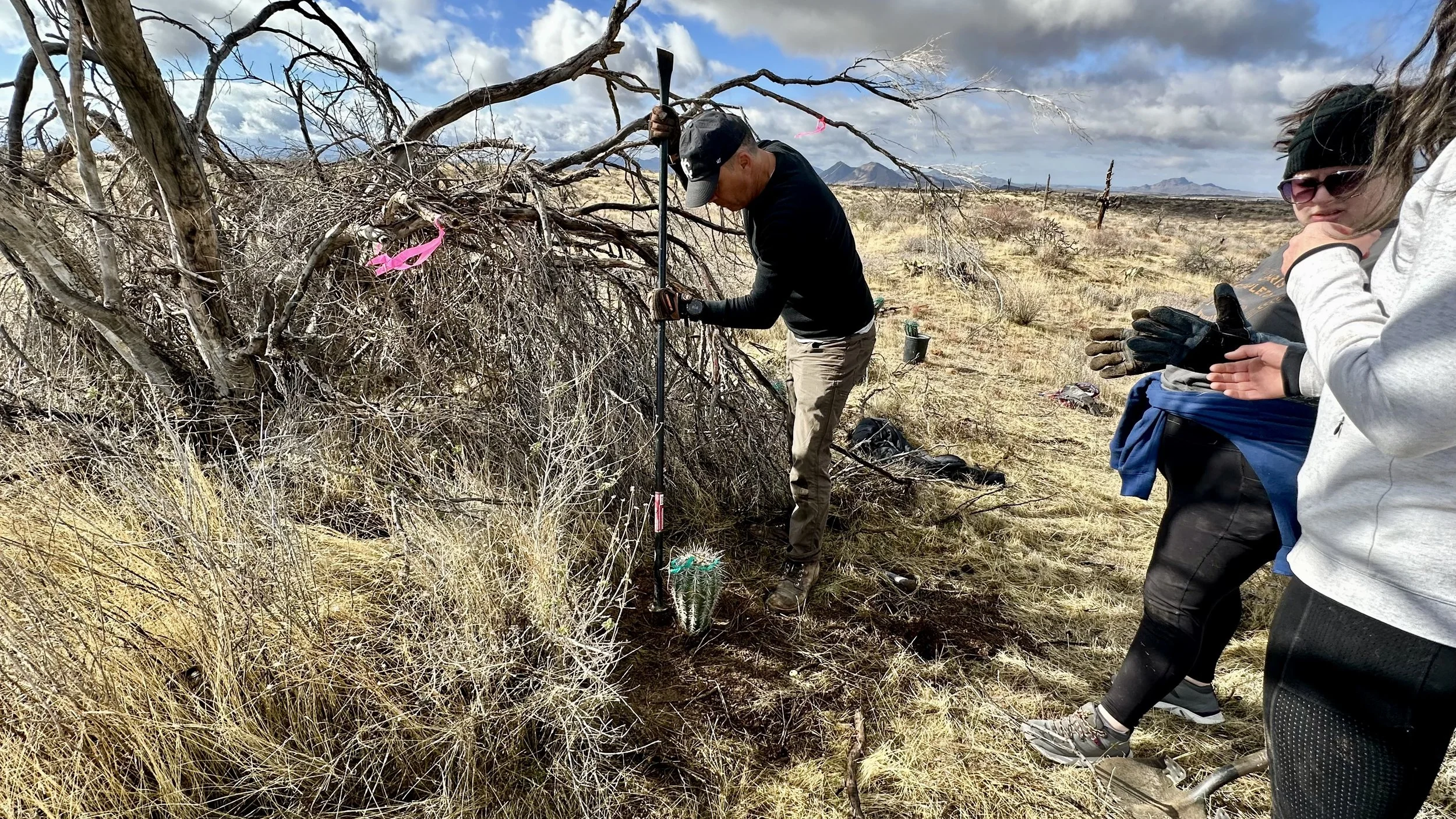 Volunteers learned about planting saguaros for long-term survival & watched demos