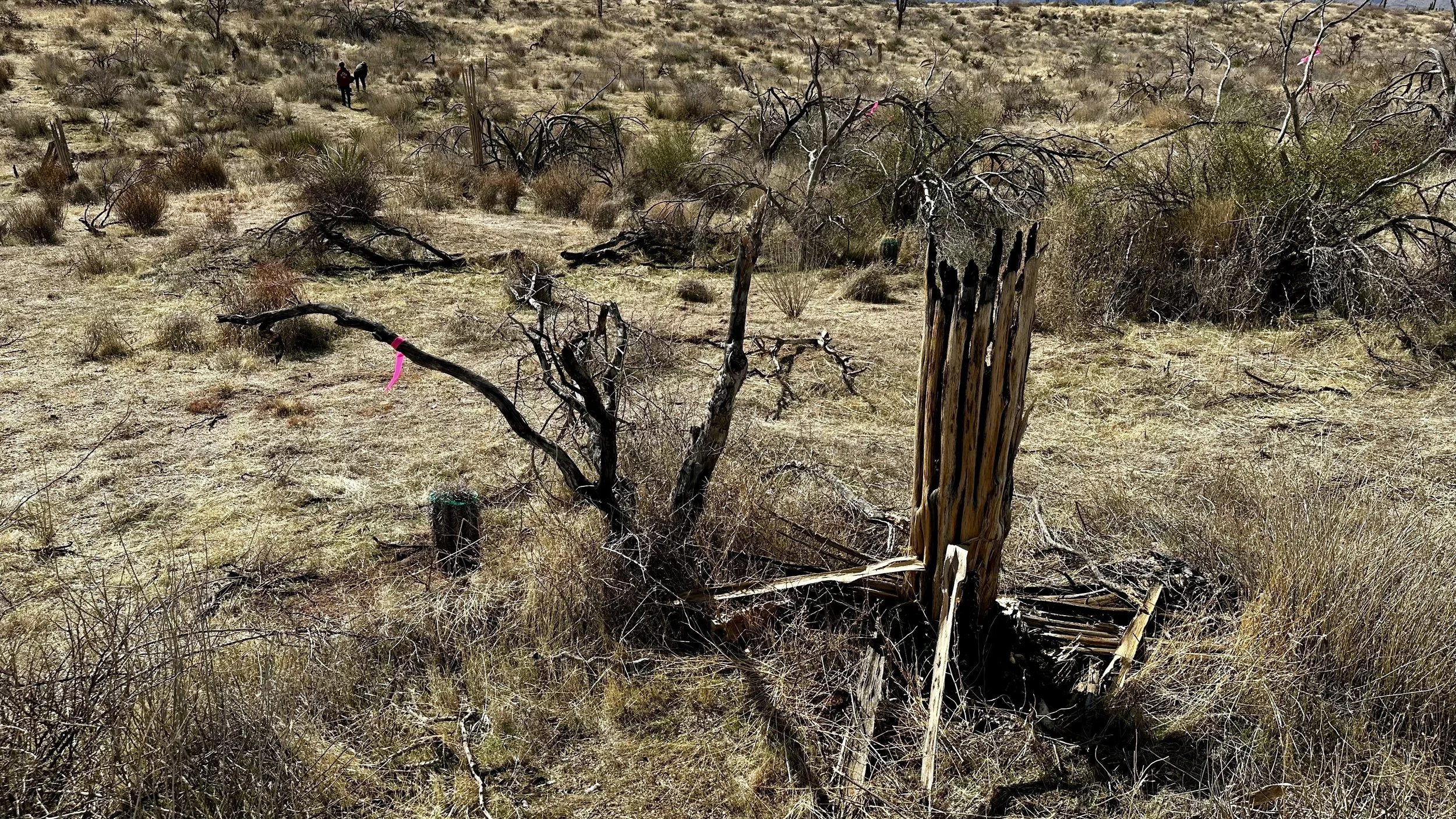 Invasive grasses & plants helped fuel the 2020 Bush Fire. Post-fire, the landscape has been dominated with invasive plants & grasses, which provide fuel for fires & out-complete native species trying to come back from the fire. By removing this competition factor, reseeding, & replanting native cacti, native plants have a greater chance of reestablishing areas formerly overrun by invasive grasses & plants post-fire. Expanding our project area, creating new firebreaks, & maintaining our project areas will help protect the area from catastrophic wildfires.