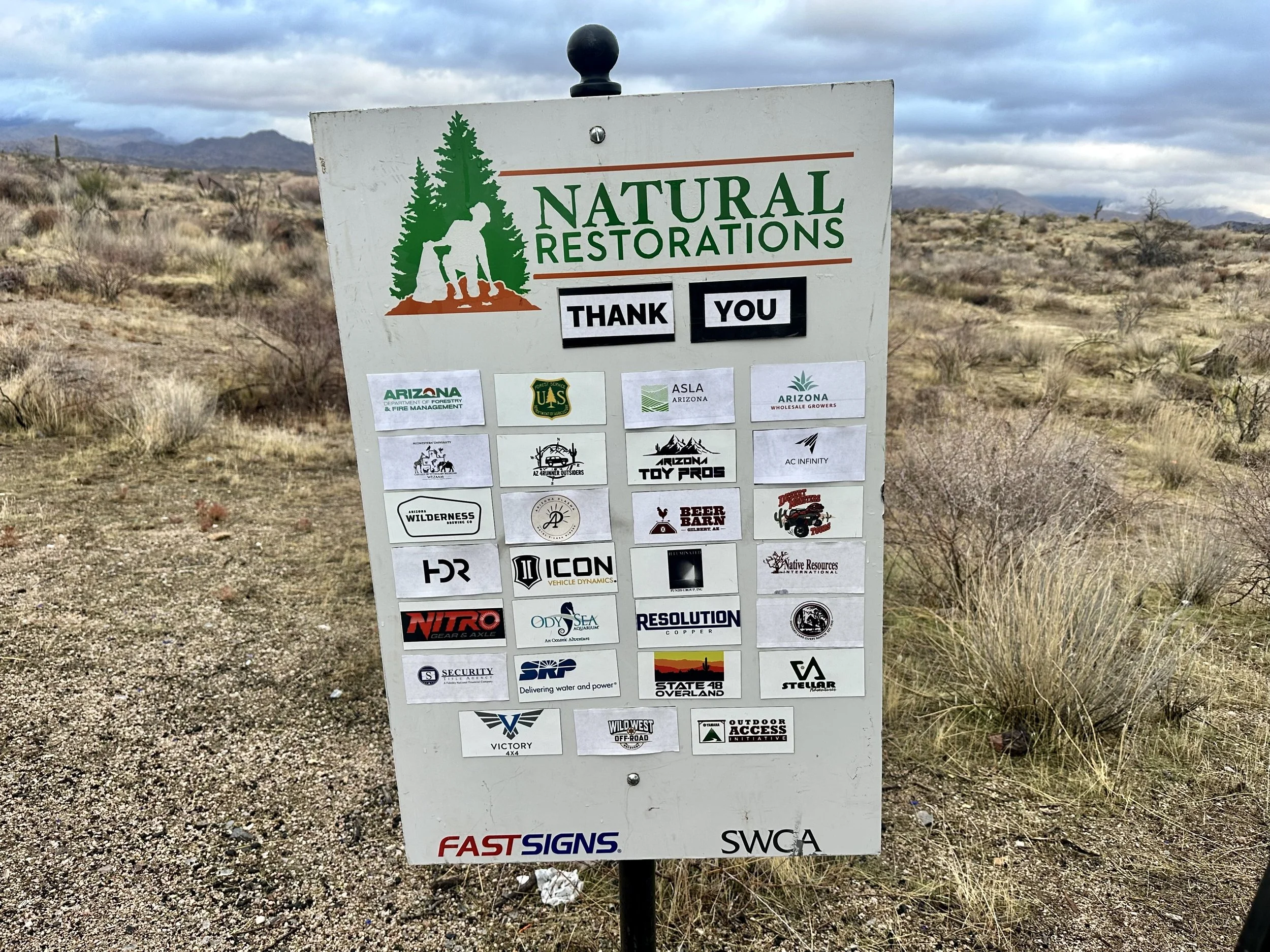 Arizona Wholesale Growers, AZ 4Runner Outsiders, Arizona Toy Pros, Arizona Plasma, Arizona Wilderness Brewing Co., AC Infinity, Beer Barn, Desert Monsters Tours, HDR, Icon Vehicle Dynamics, Illuminated Funds Group, Native Resources, Nitro Gear & Axle, OdySea Aquarium, Resolution Copper, Saguaro Lake Guest Ranch, Salt River Project, Security Title Agency, State 48 Overland, Stellar Adventures, Victory 4x4, Wild West Off-Road Recovery, & Yamaha Outdoor Access Initiative.