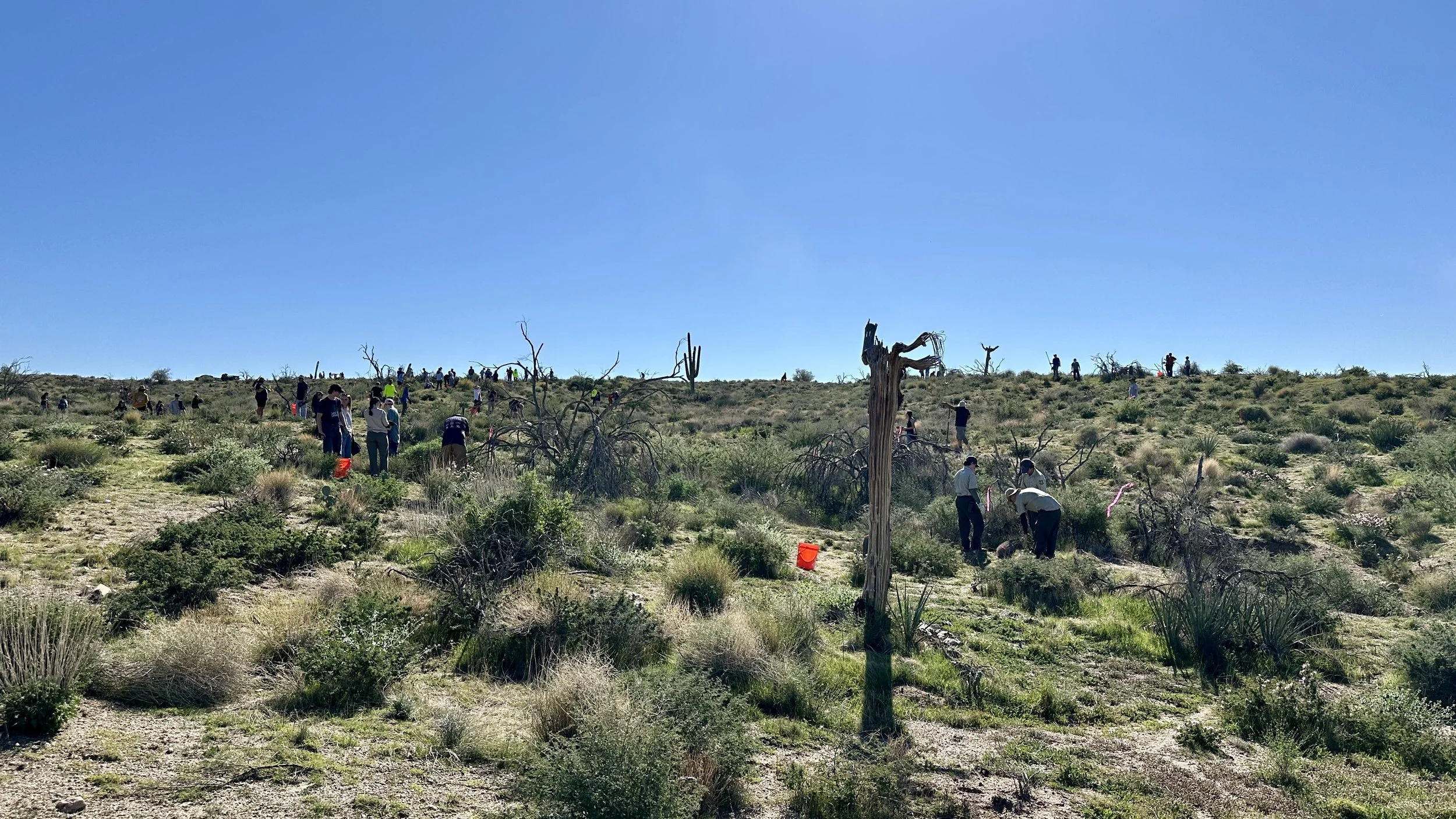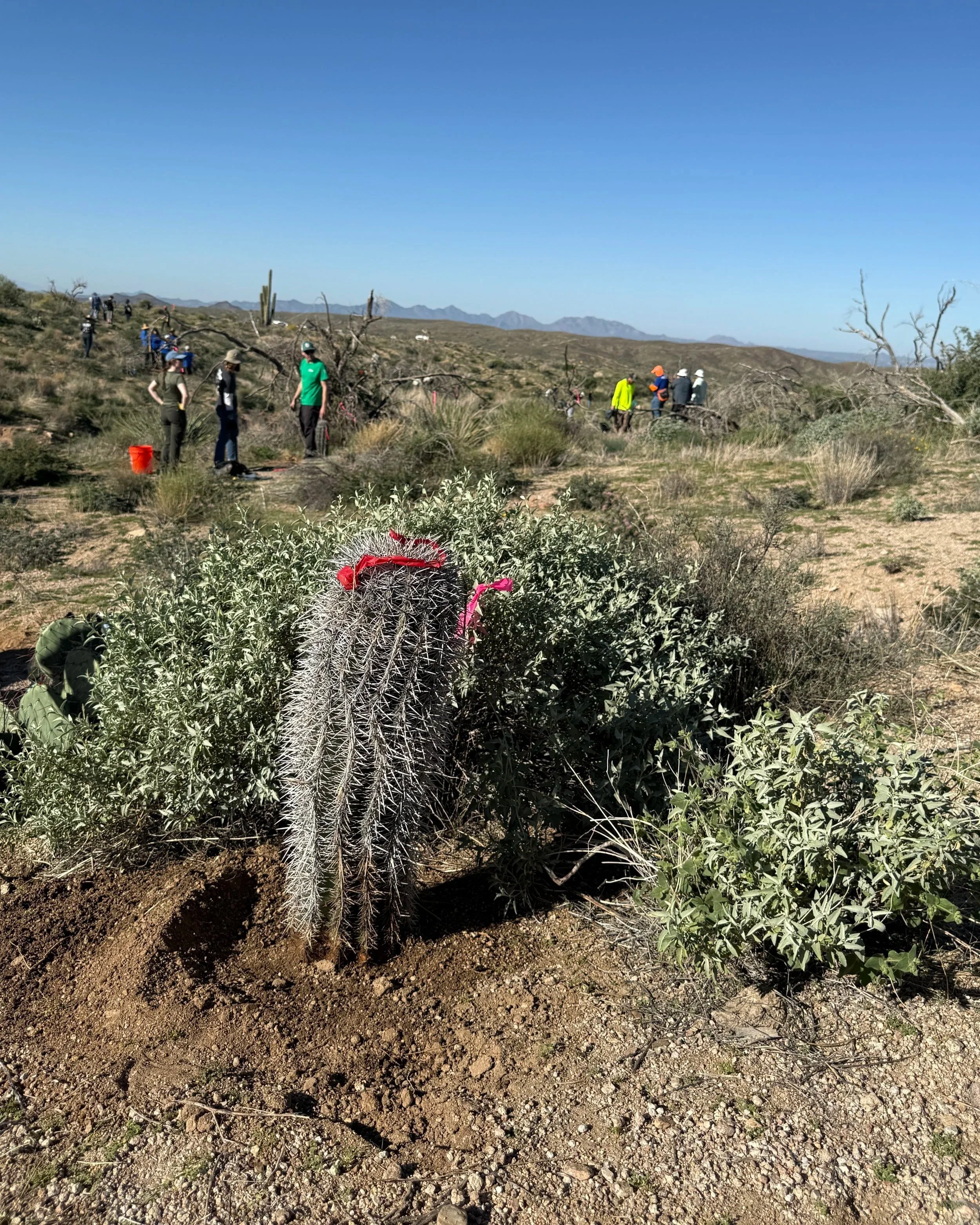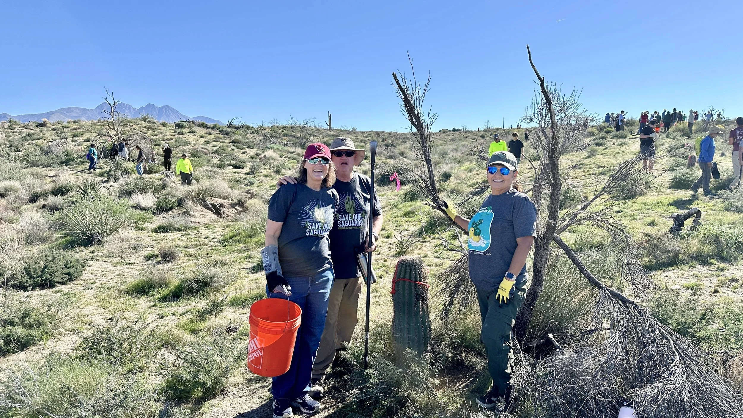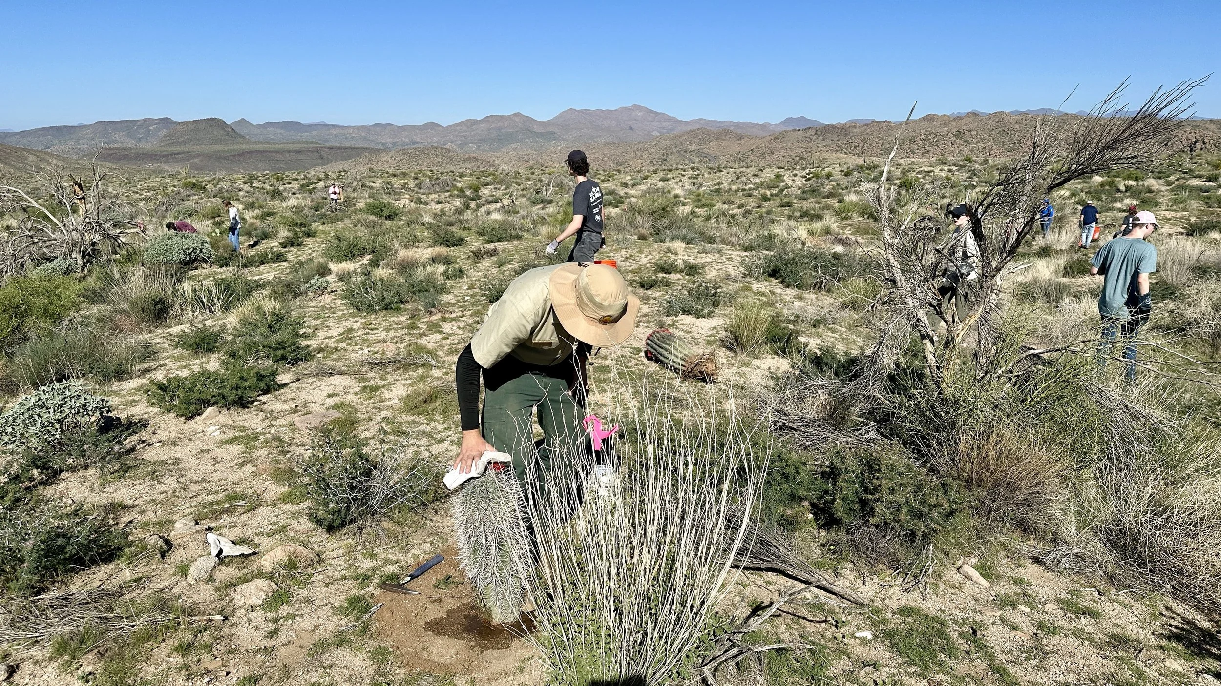 120 volunteers, including 21 youth volunteers, helped us plant 148 2foot to 3-1/2 foot saguaros in the 2020 Bush Fire burn scar at Four Peaks on the Tonto National Forest. Saguaros were purchased at a deep discount from Arizona Wholesale Growers through a grant we received from Wells Fargo and funding we received from National Forest Foundation.