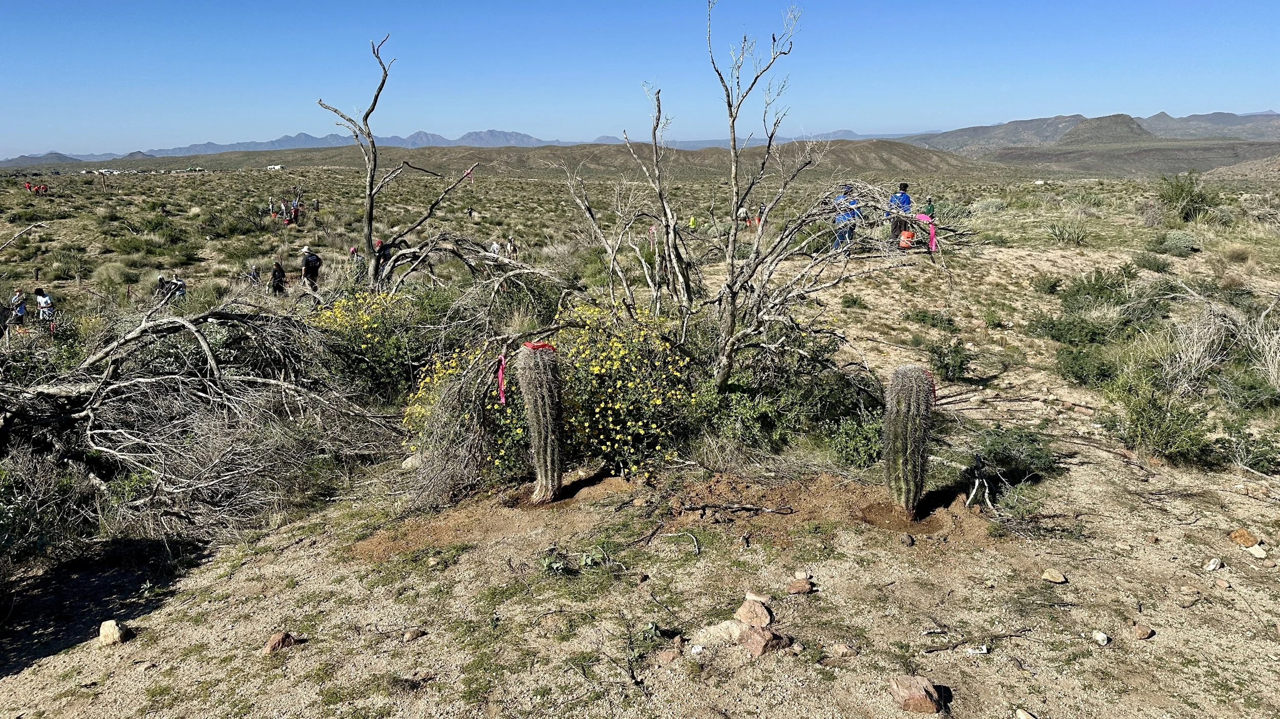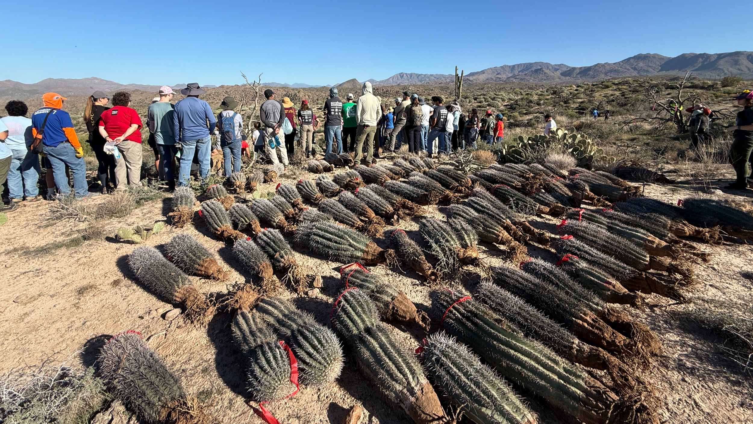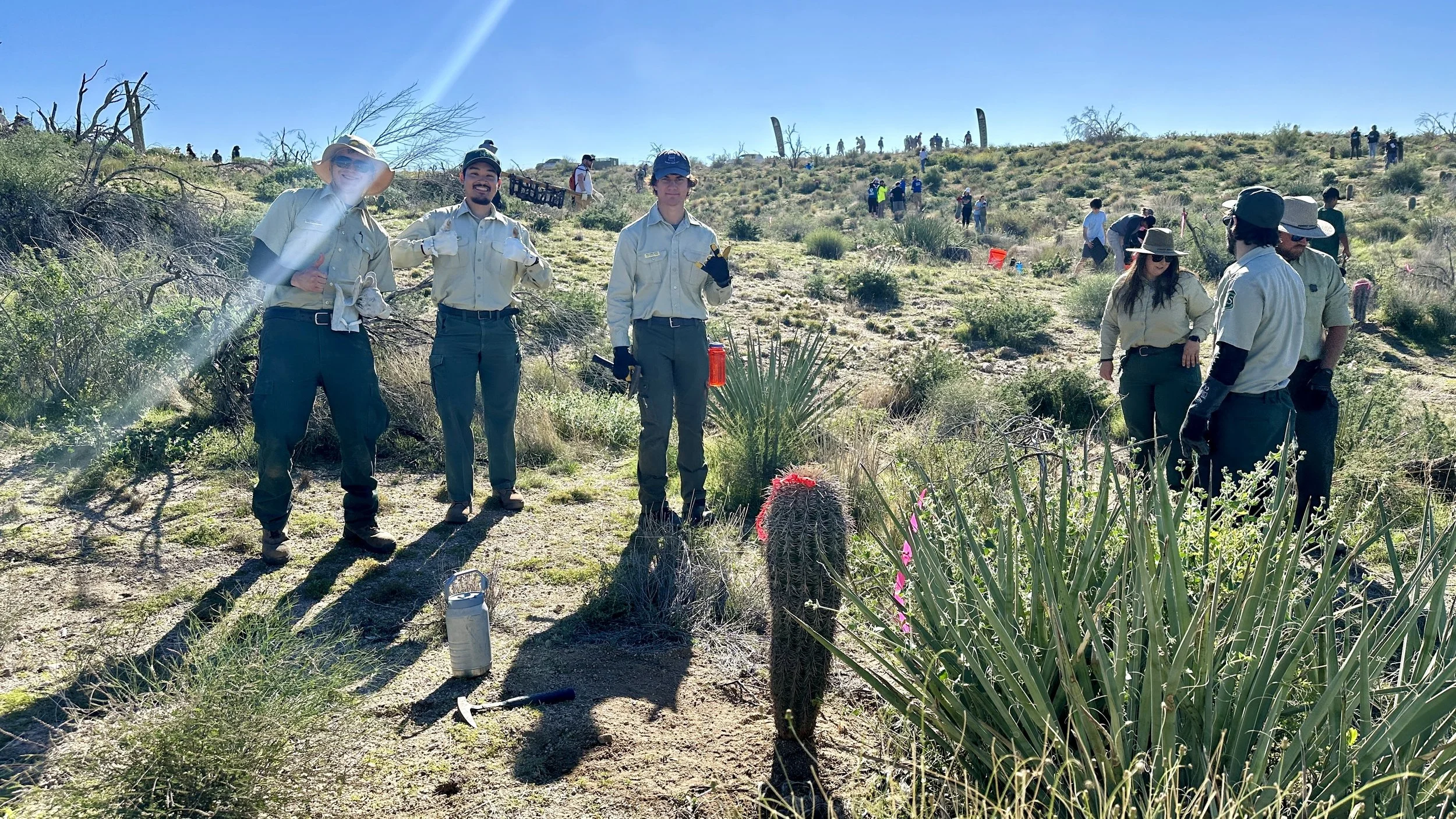 120 volunteers, including 21 youth volunteers, helped us plant 148 2foot to 3-1/2 foot saguaros in the 2020 Bush Fire burn scar at Four Peaks on the Tonto National Forest. Saguaros were purchased at a deep discount from Arizona Wholesale Growers through a grant we received from Wells Fargo and funding we received from National Forest Foundation.