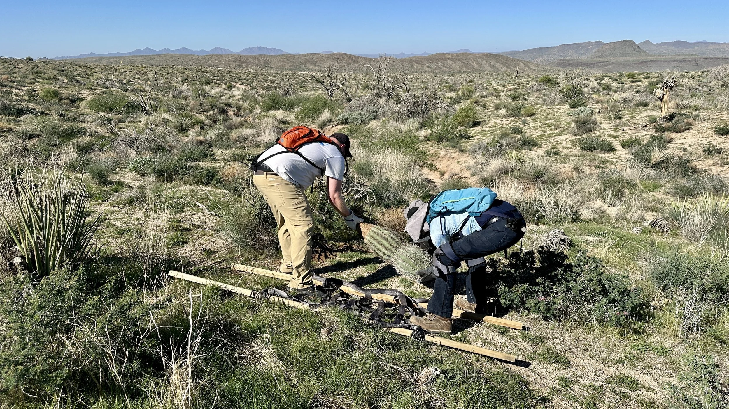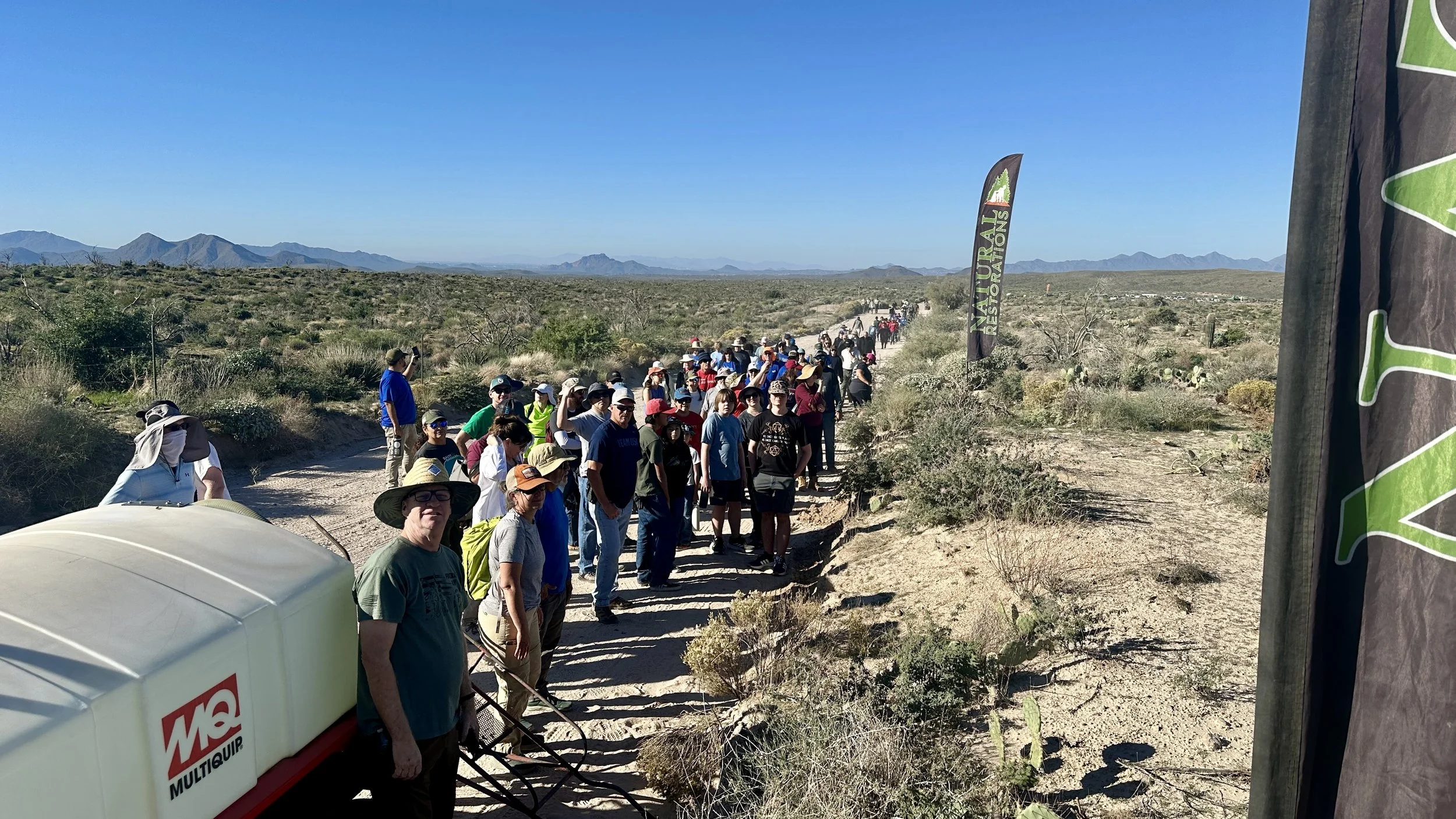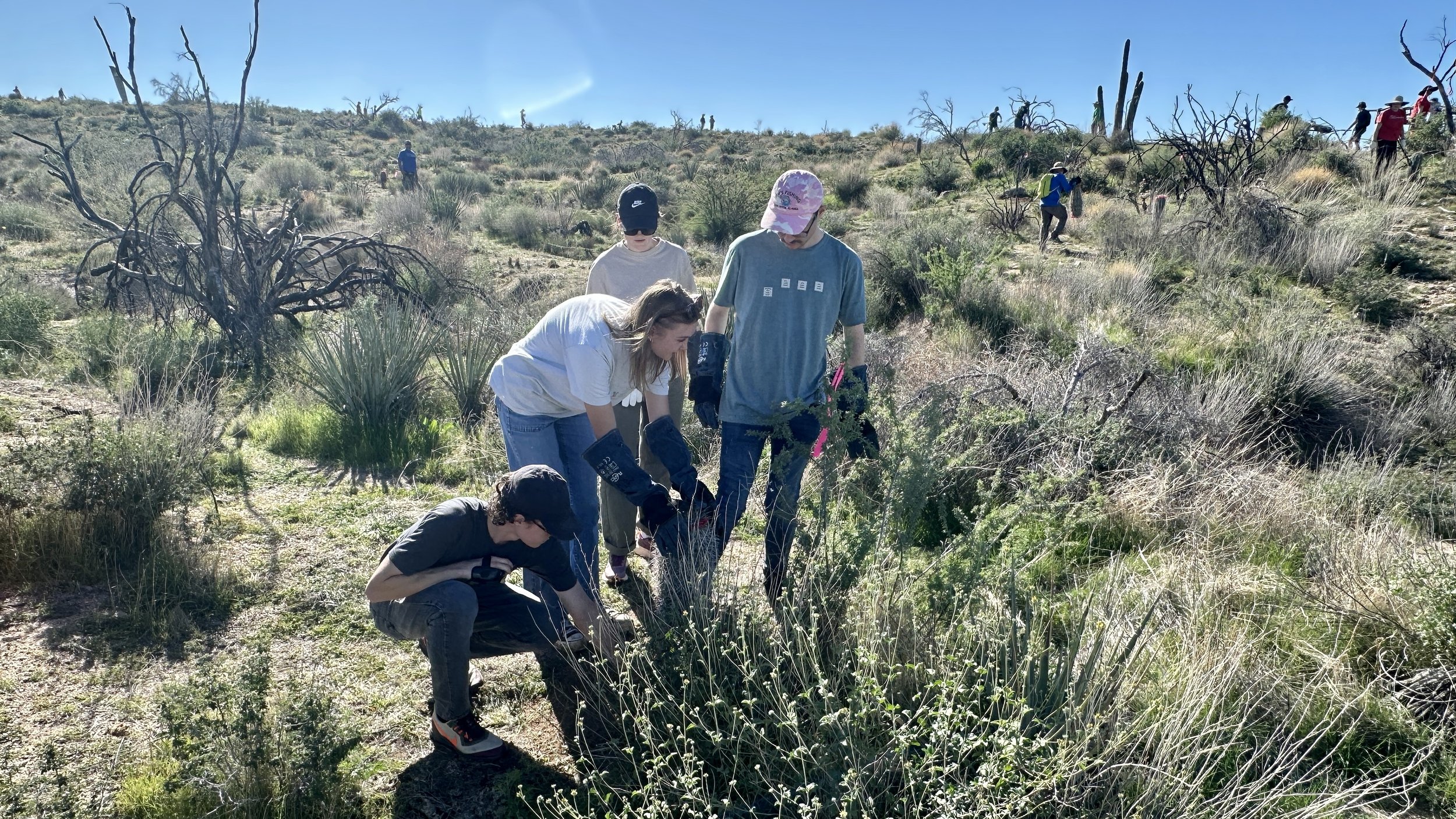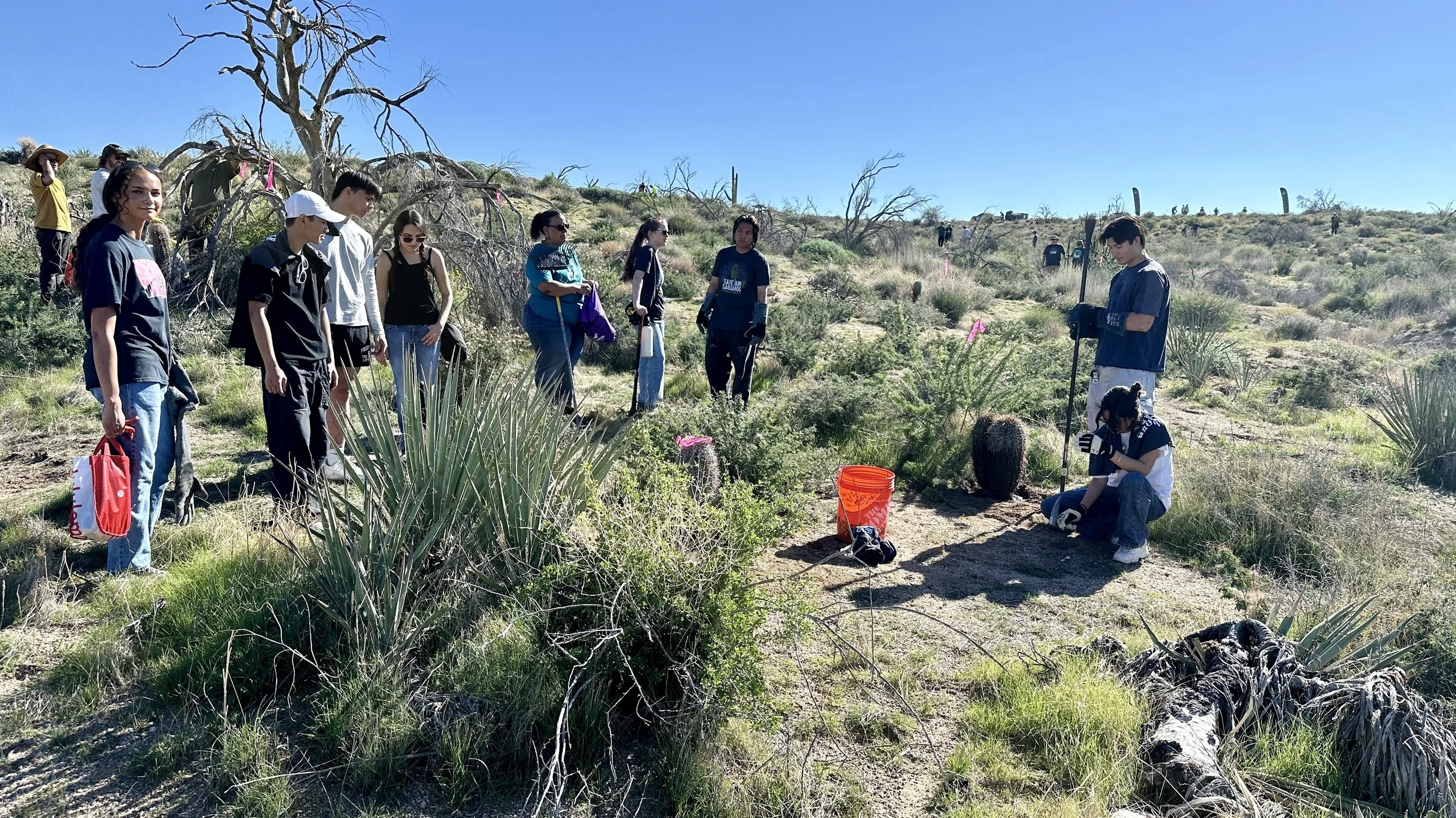 120 volunteers, including 21 youth volunteers, helped us plant 148 2foot to 3-1/2 foot saguaros in the 2020 Bush Fire burn scar at Four Peaks on the Tonto National Forest. Saguaros were purchased at a deep discount from Arizona Wholesale Growers through a grant we received from Wells Fargo and funding we received from National Forest Foundation.