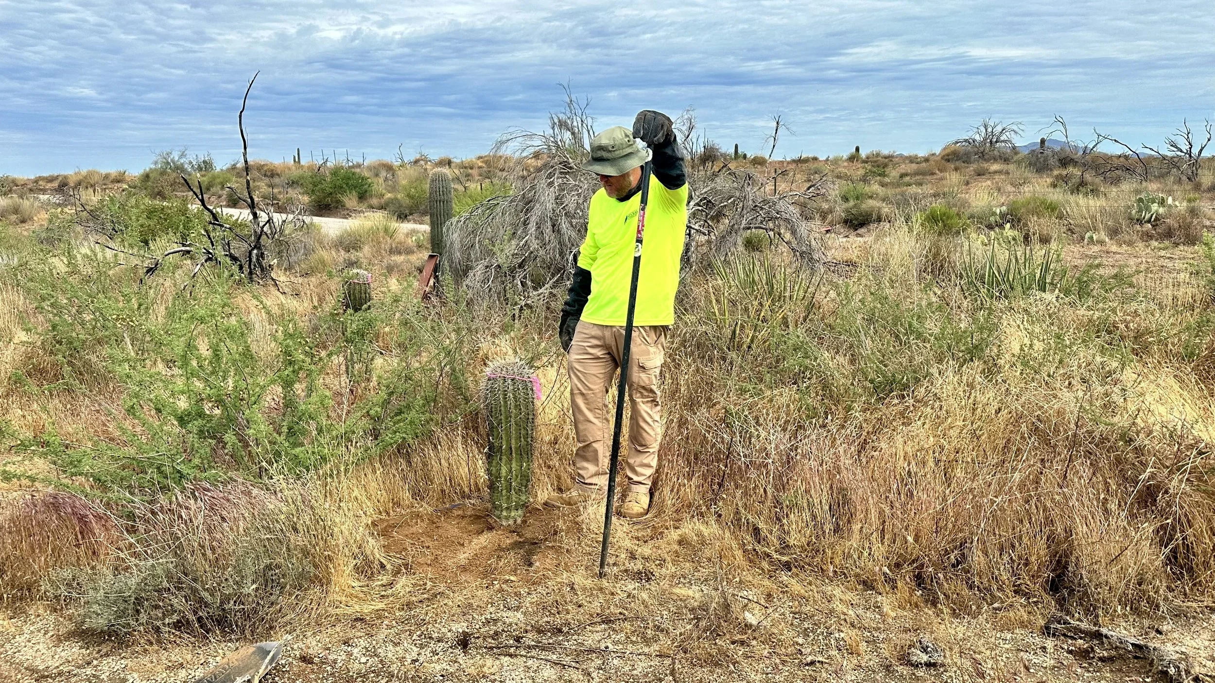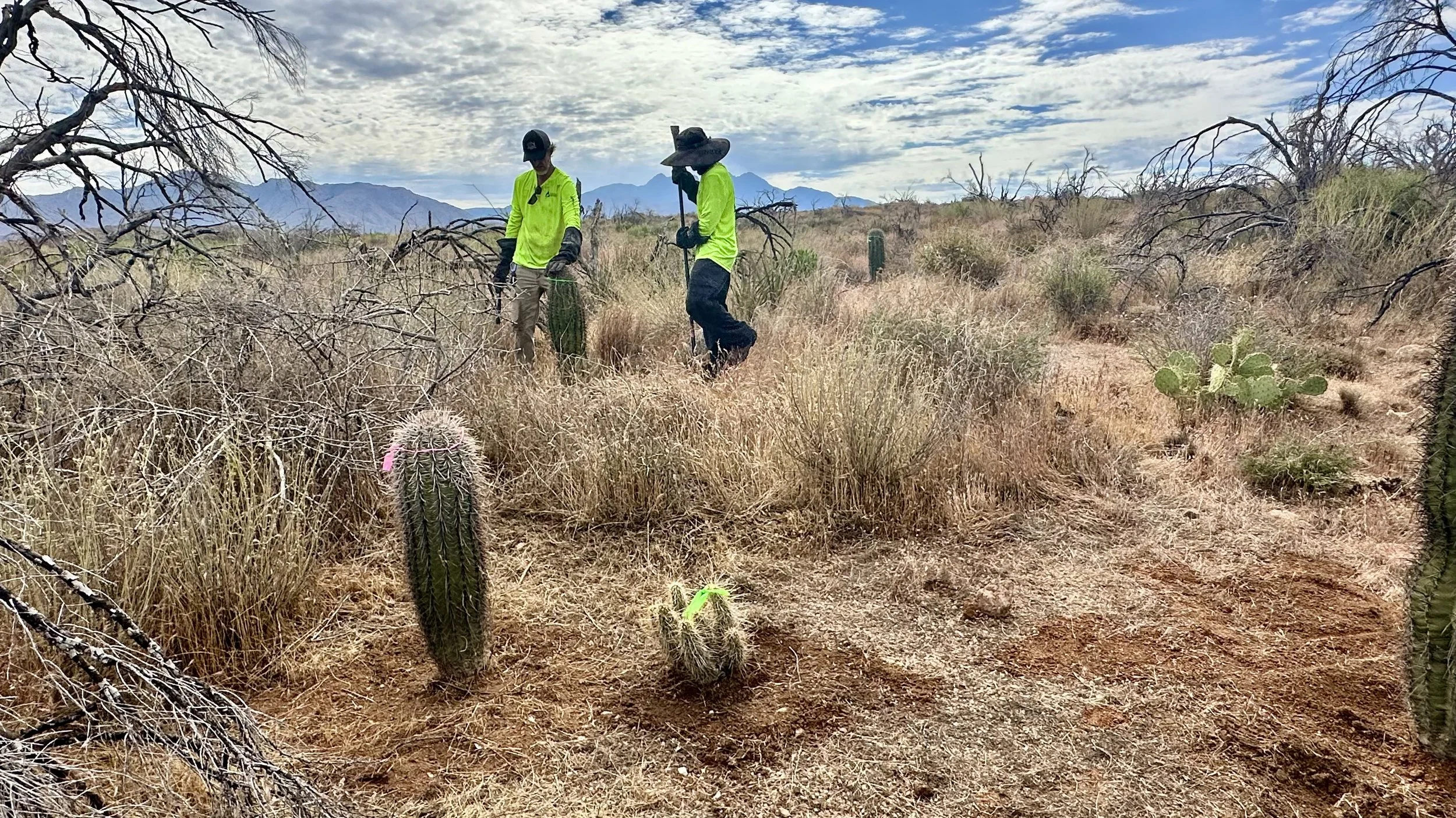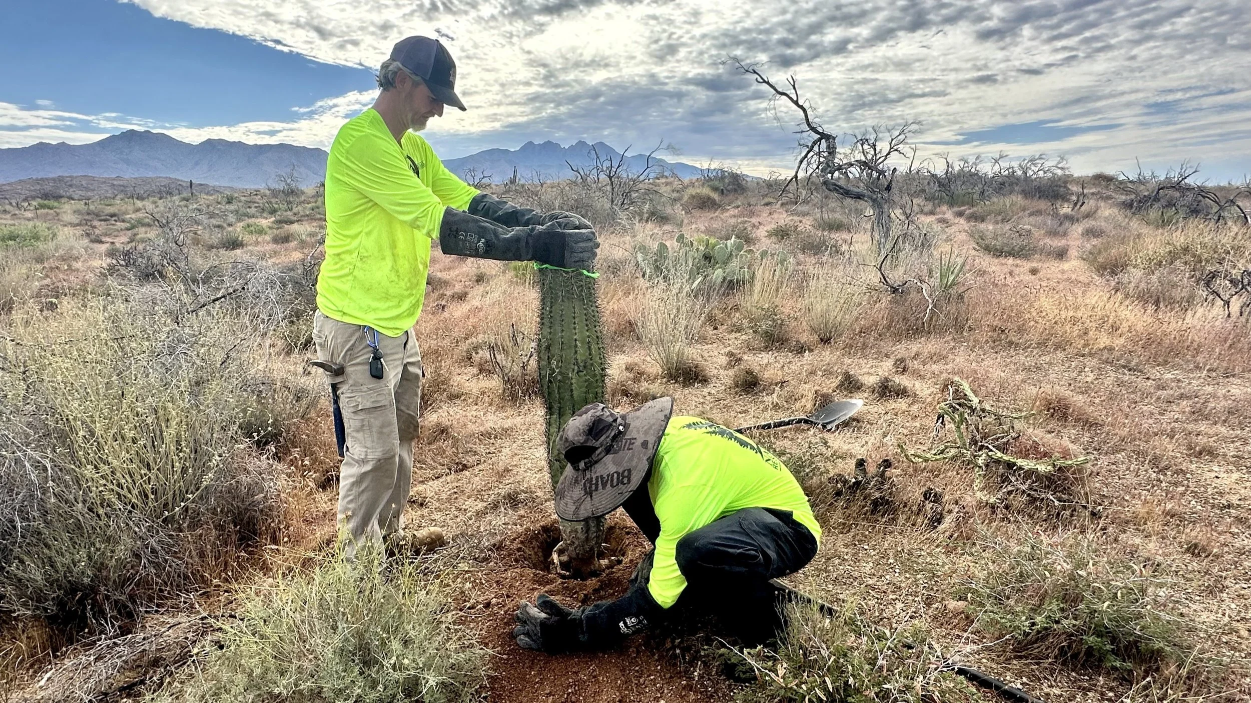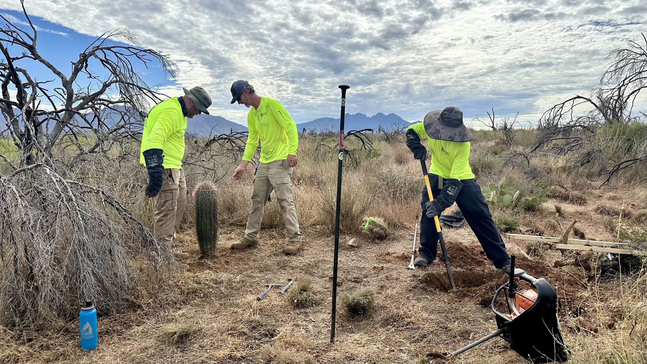 In addition to replanting saguaros in the burn scar, we love the opportunity to plant other native Sonoran Desert cacti as often as possible to help restore the ecosystem and bring pollinators to the area.