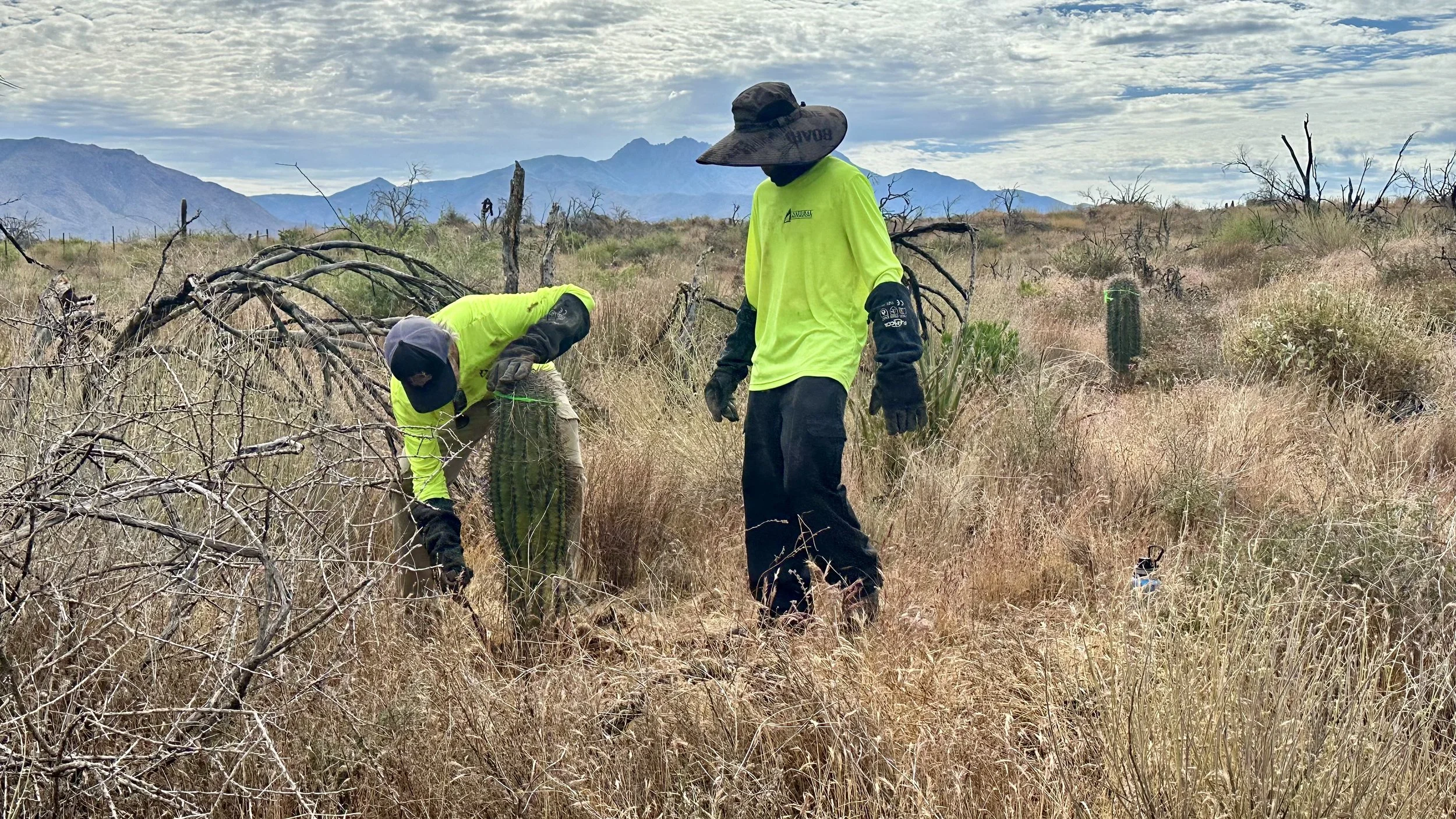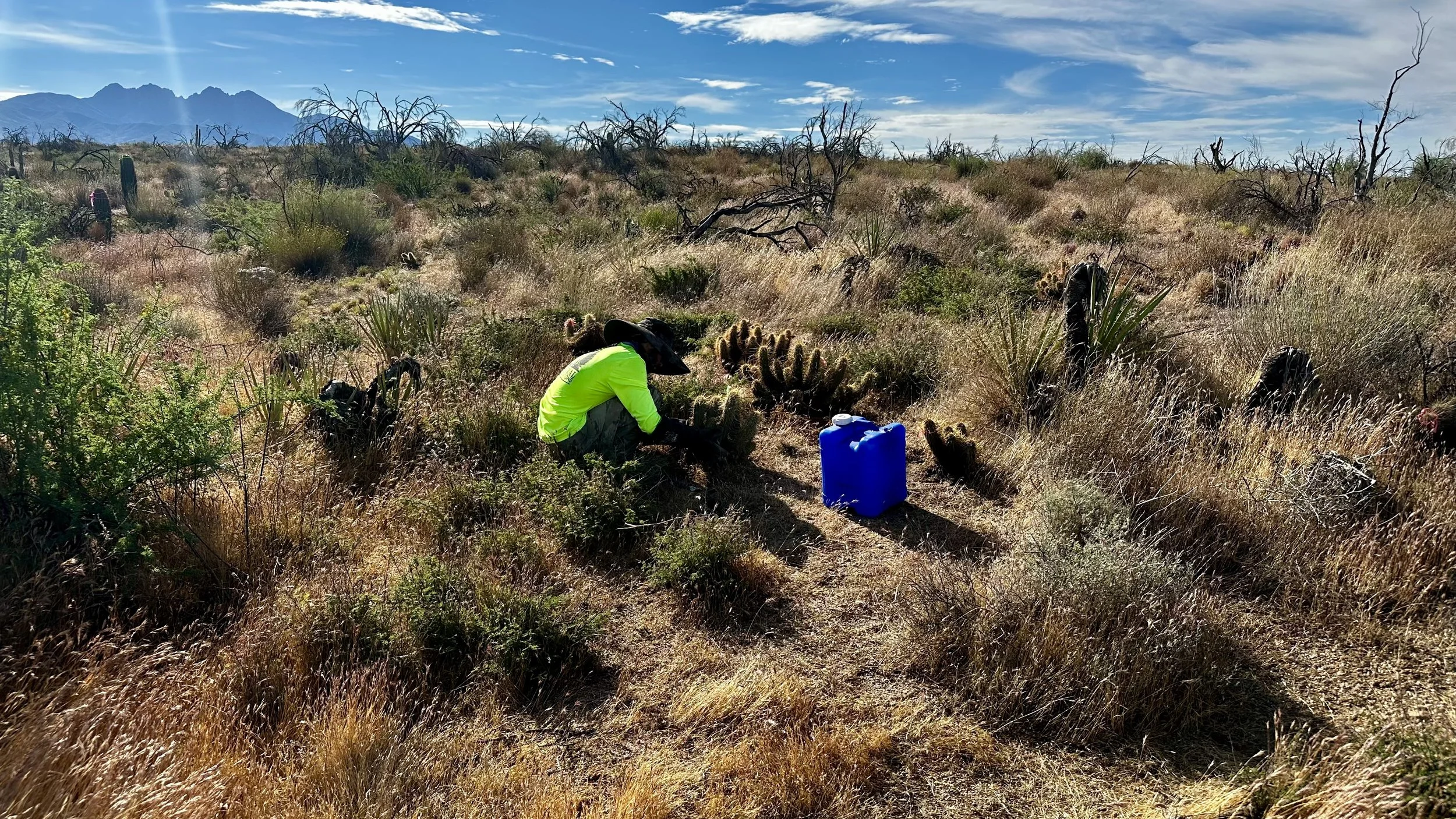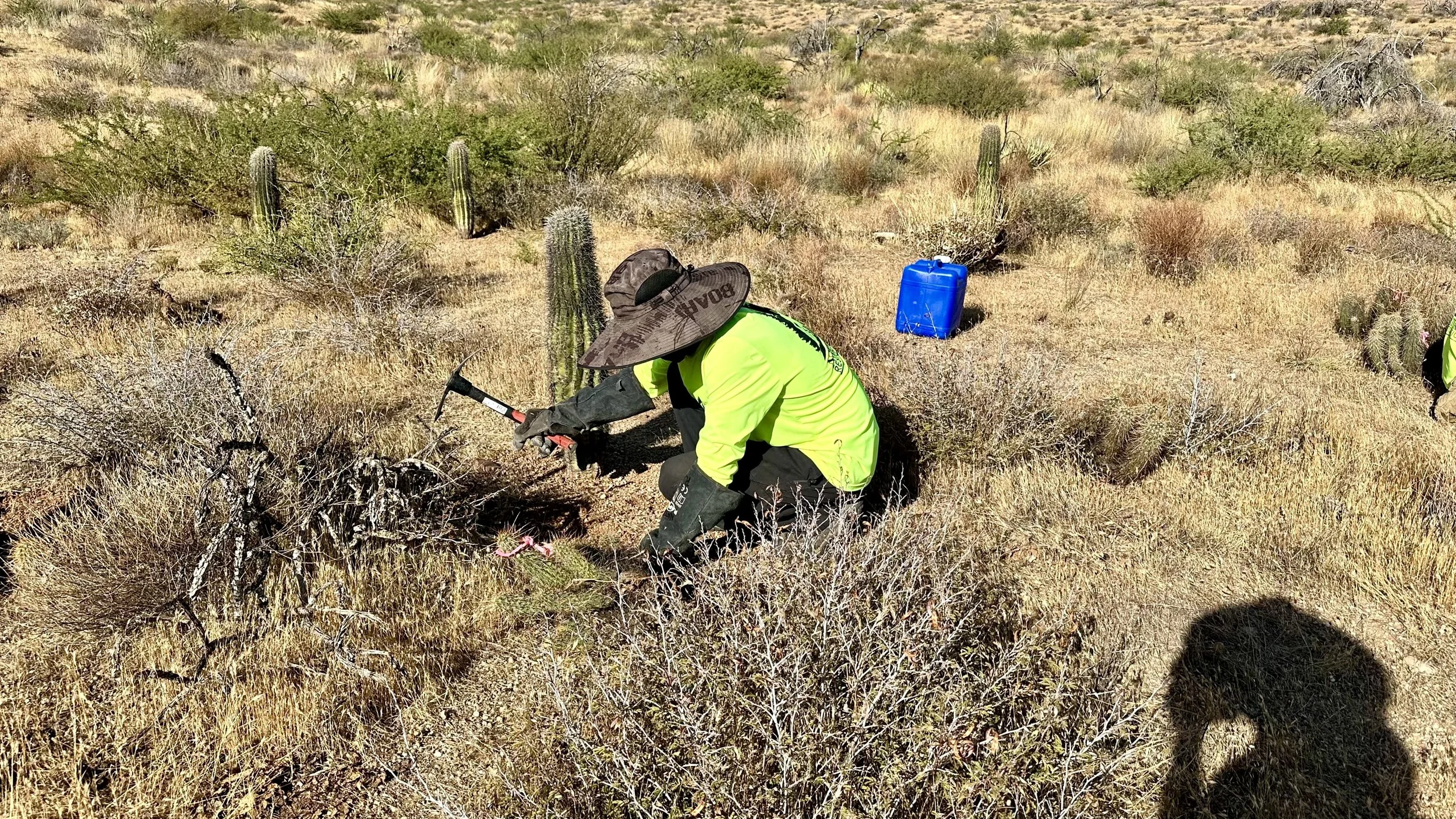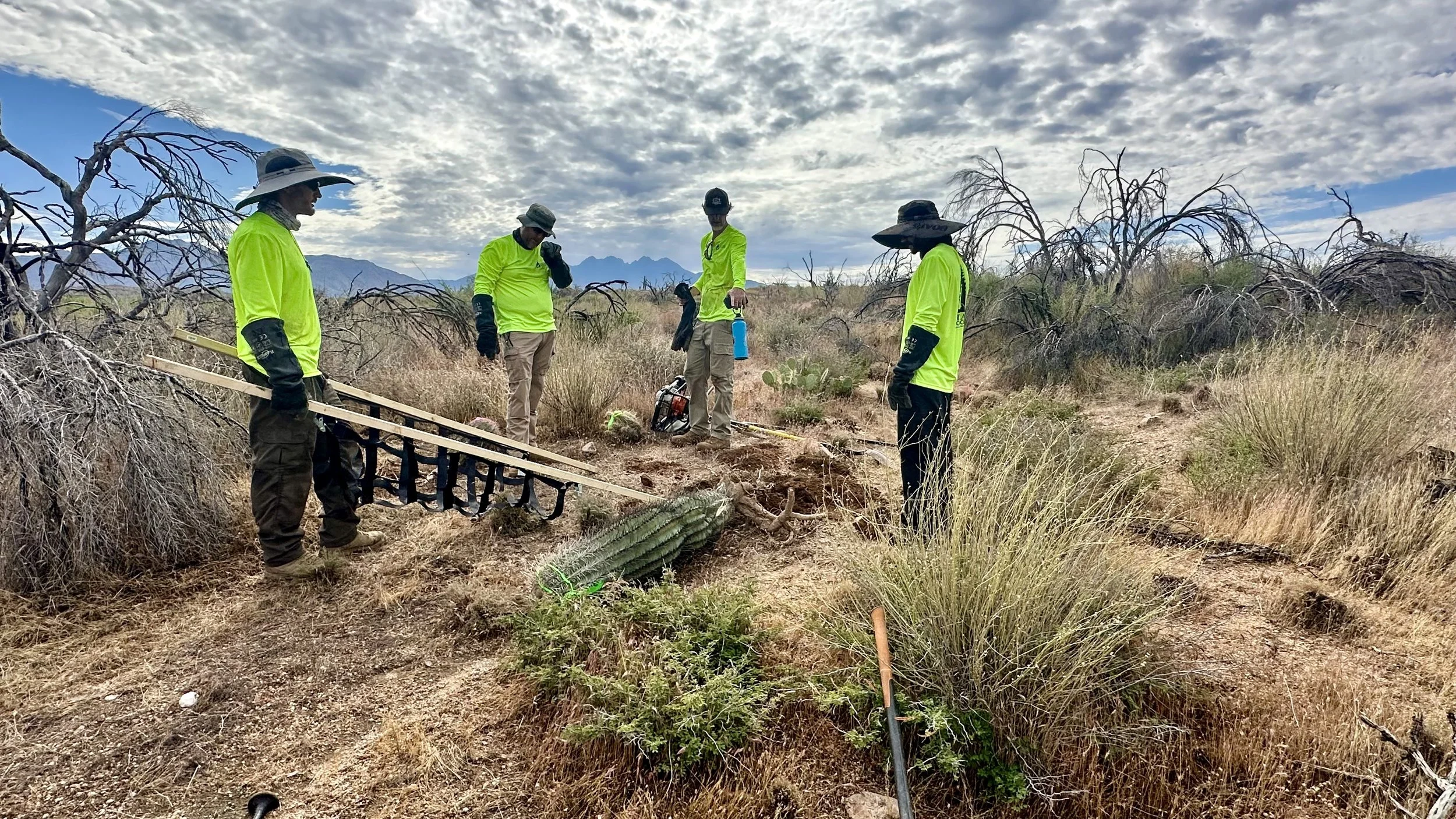 In addition to replanting saguaros in the burn scar, we love the opportunity to plant other native Sonoran Desert cacti as often as possible to help restore the ecosystem and bring pollinators to the area.
