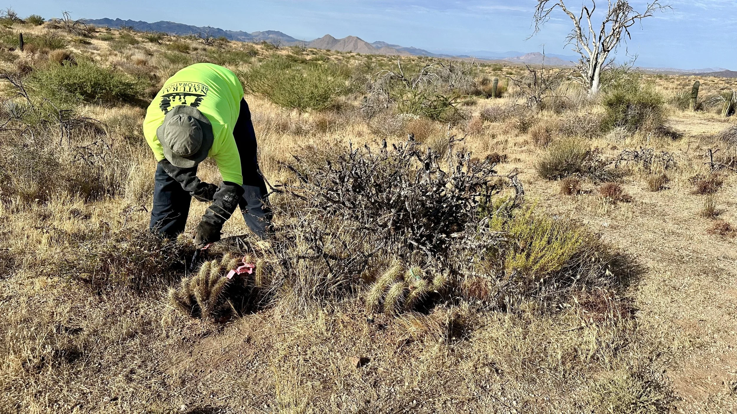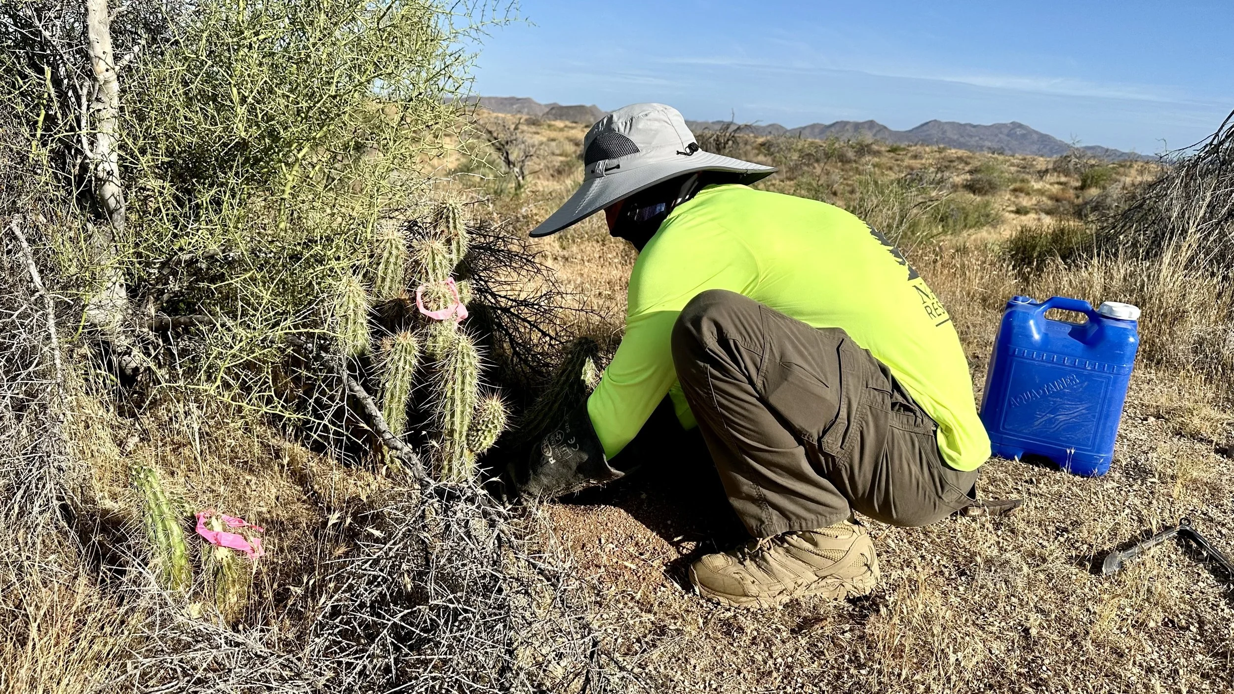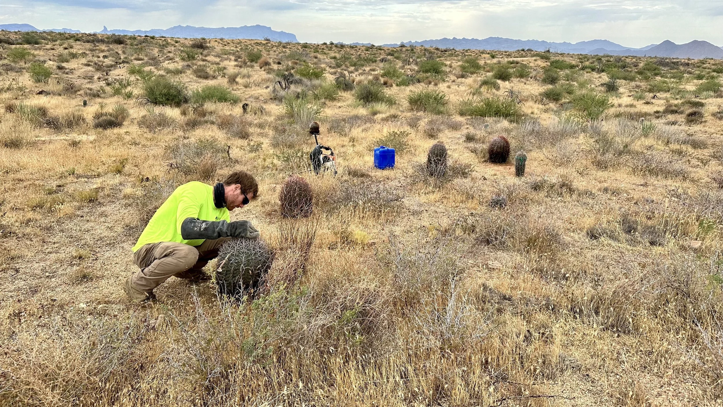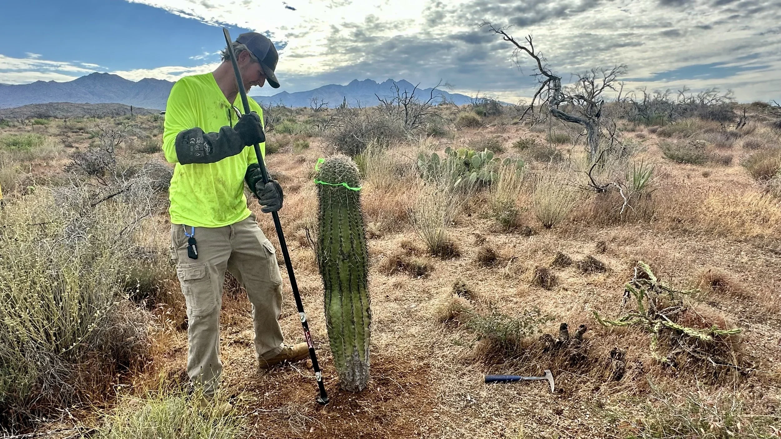 In addition to replanting saguaros in the burn scar, we love the opportunity to plant other native Sonoran Desert cacti as often as possible to help restore the ecosystem and bring pollinators to the area.