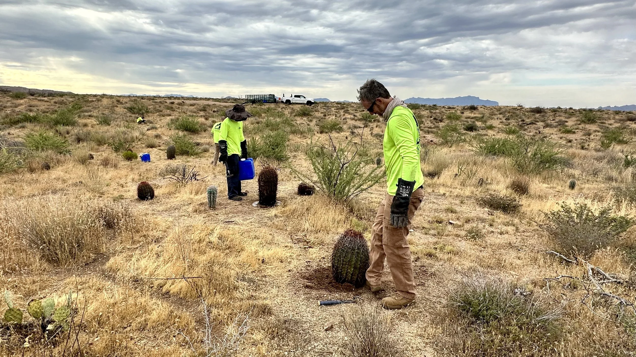 Usually, we rely on cacti salvages to source hedgehog, barrel, & other cacti. For this grant, not only did we have salvaged hedgehog and barrels to plant, we also received a donation from Arizona Wholesale Growers of 83 hedgehog and 59 barrels. In total for this project, we planted 156 hedgehog and 123 barrels.