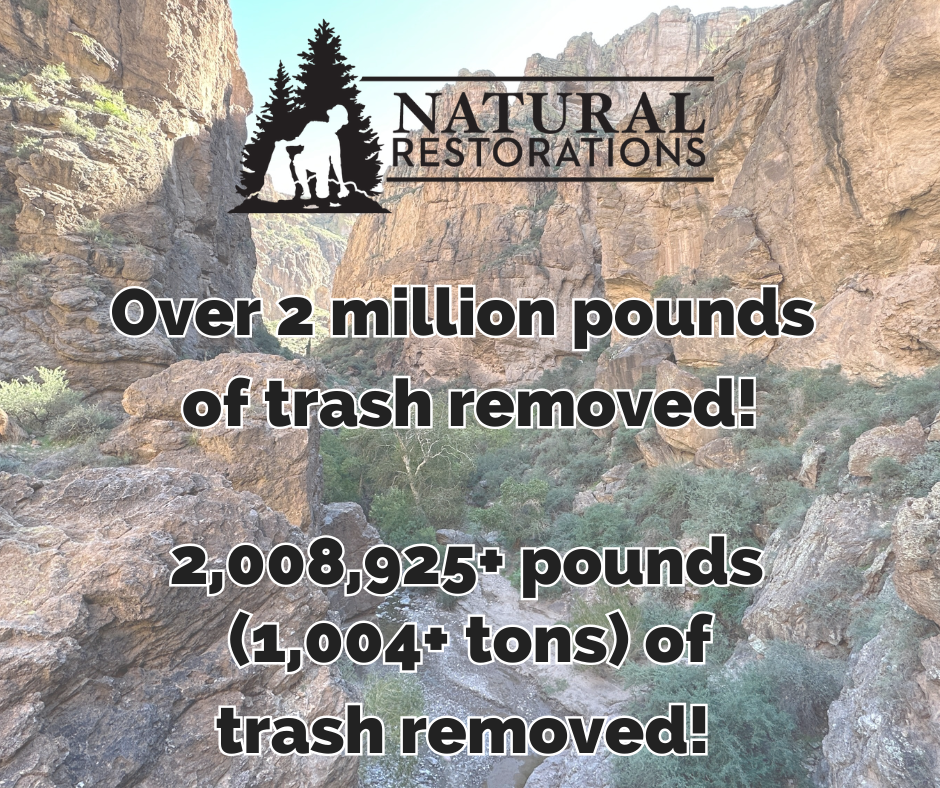 2 MILLION+ POUNDS OF TRASH REMOVED! We hit a huge milestone on Halloween, 10/31/25, we have removed over 2 million pounds of trash from Arizona’s Outdoor Recreation & Wilderness Areas! We hit 1 million pounds of trash removed on 05/18/20 & it seems fitting that we hit 2 million pounds the same year we hit our 10-year anniversary!