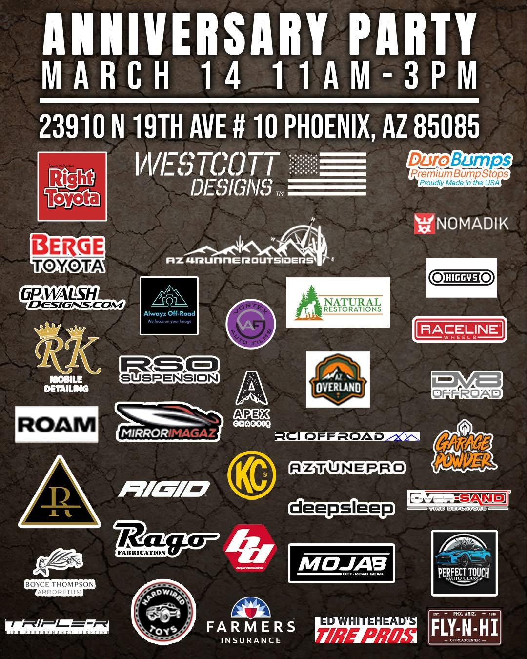 Two Anniversaries. One community. If you love Off-roading, Toyotas, 4Runners, Arizona, trucks, trails, & a crew that’s all about fun, adventure, & giving back, this event is for you! EVERYONE IS WELCOME!