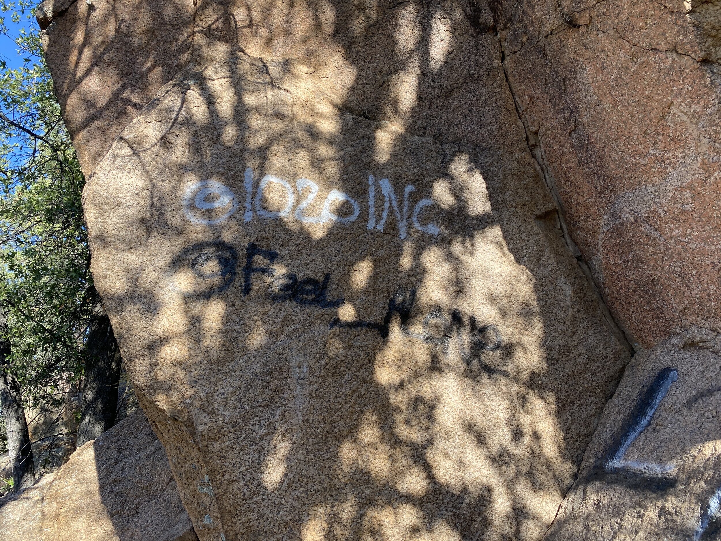 This year, our focus was on the Washington Park Tunnel along the Arizona Trail and graffiti from the the Granite Dells, Eagle Rock, Monument Peak Trailhead, and Boulders Loop Trail. These sites are on the Tonto National Forest - Payson Ranger District. We are grateful to everyone at the Tonto National Forest - Payson Ranger District for their support of these projects.
