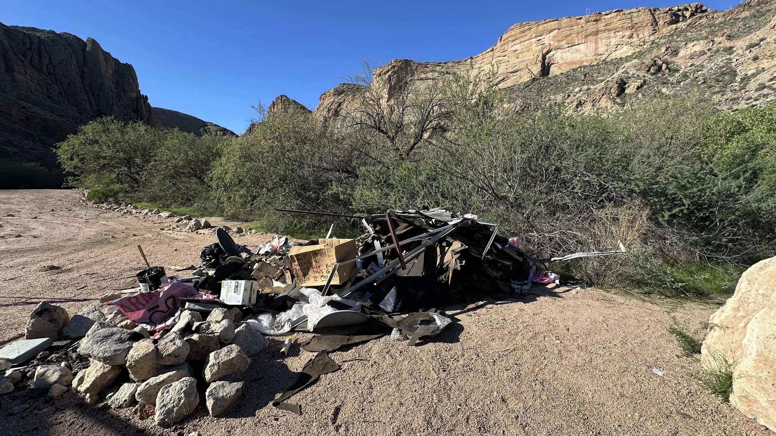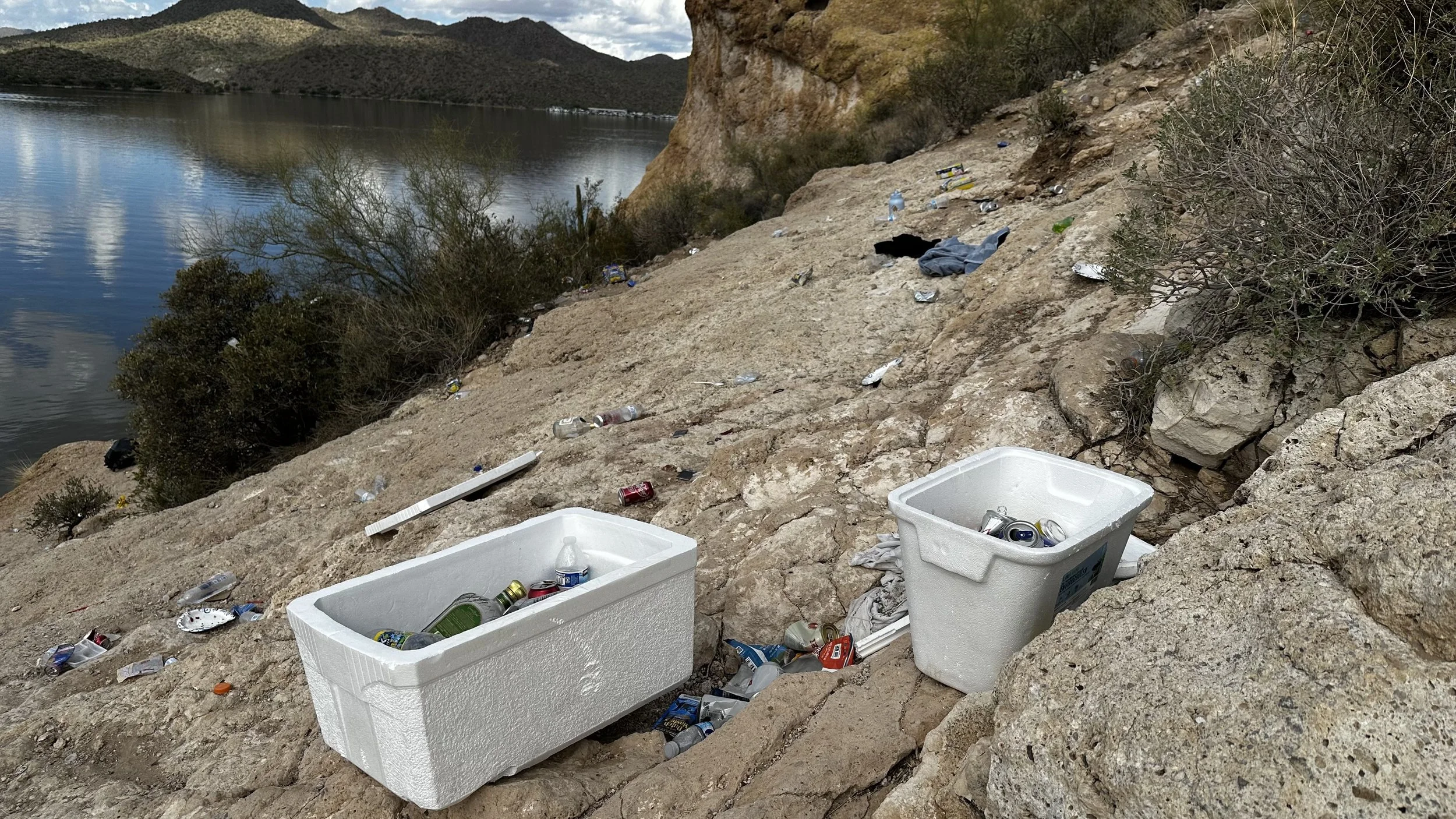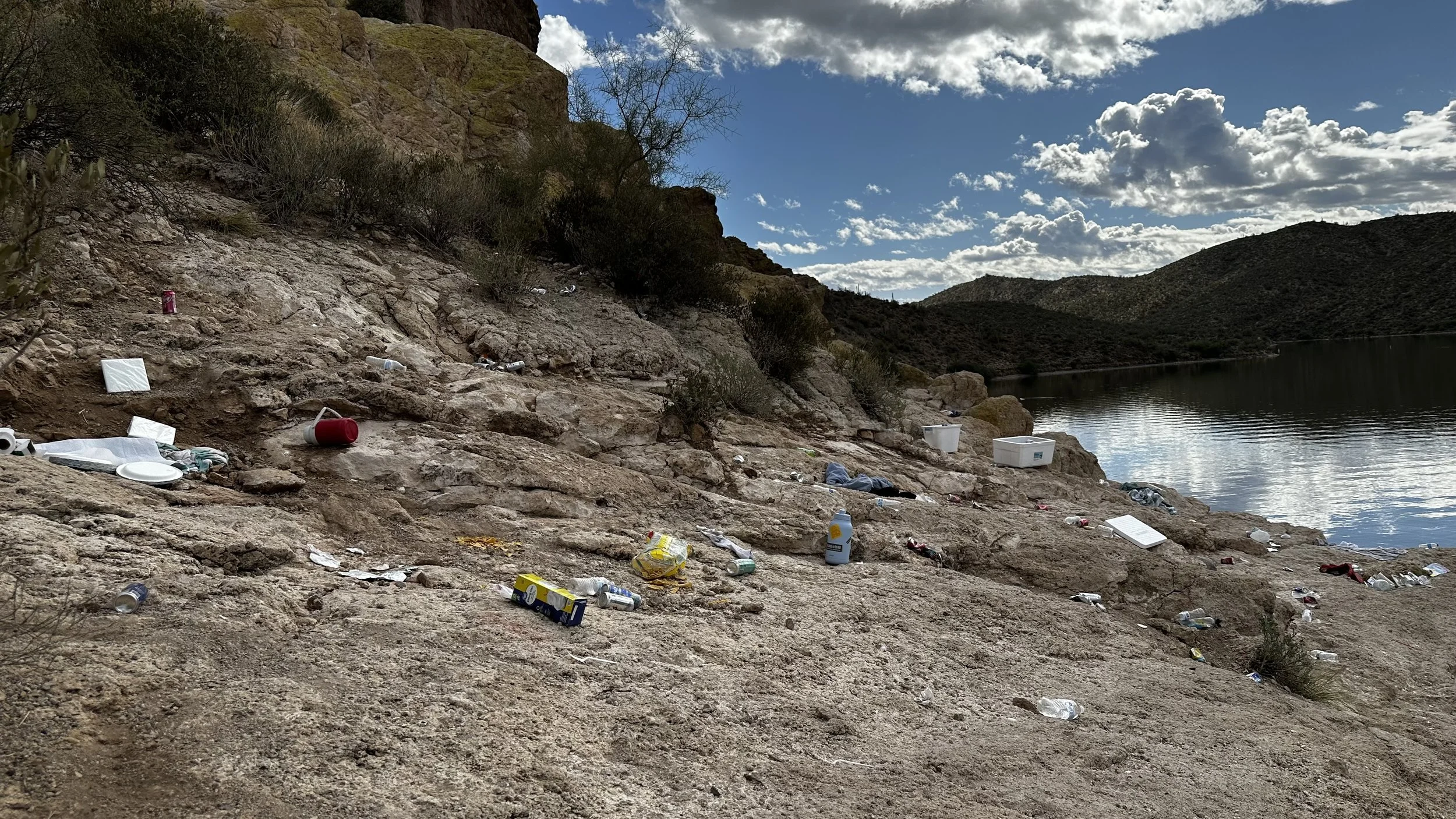 The trails and cliffs at Saguaro Lake see heavy abuse from people partying & leaving trash behind.
