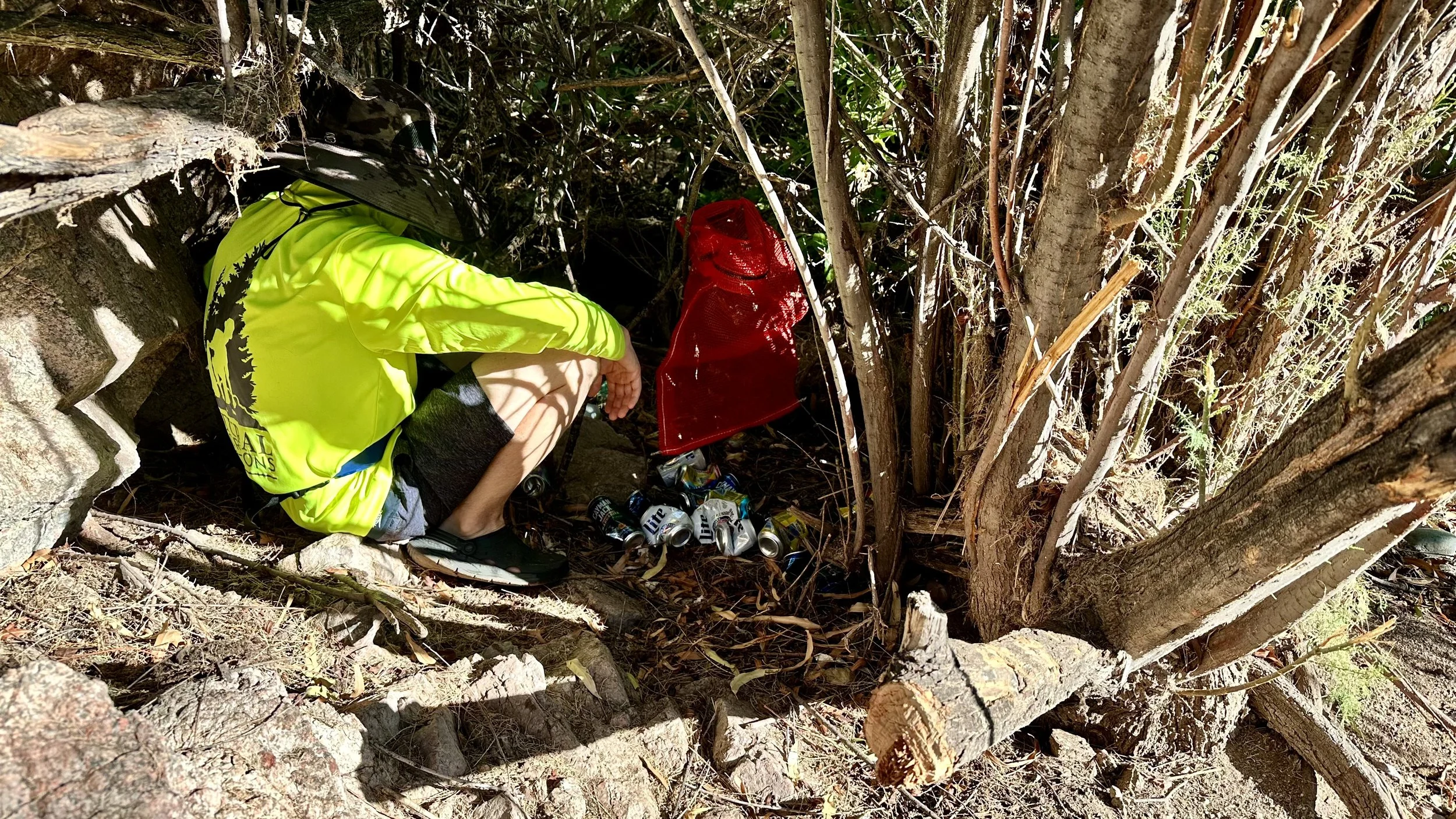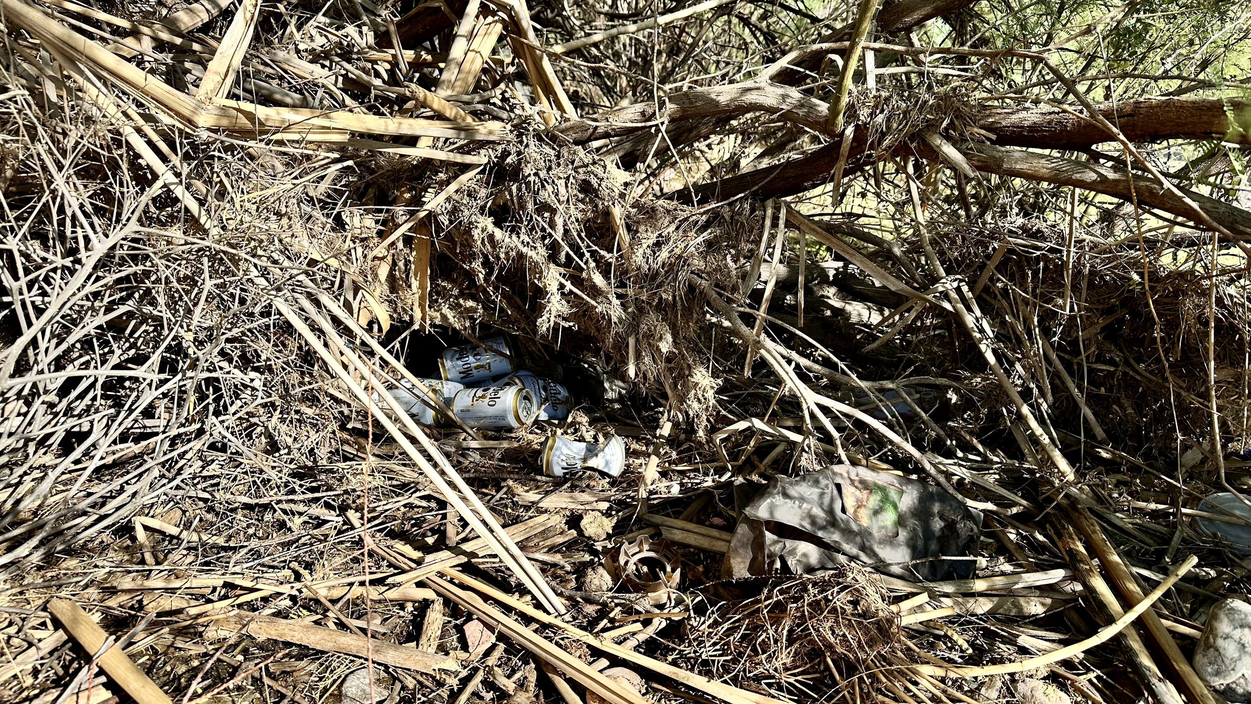 BEFORE - beer cans tucked into the vegetation