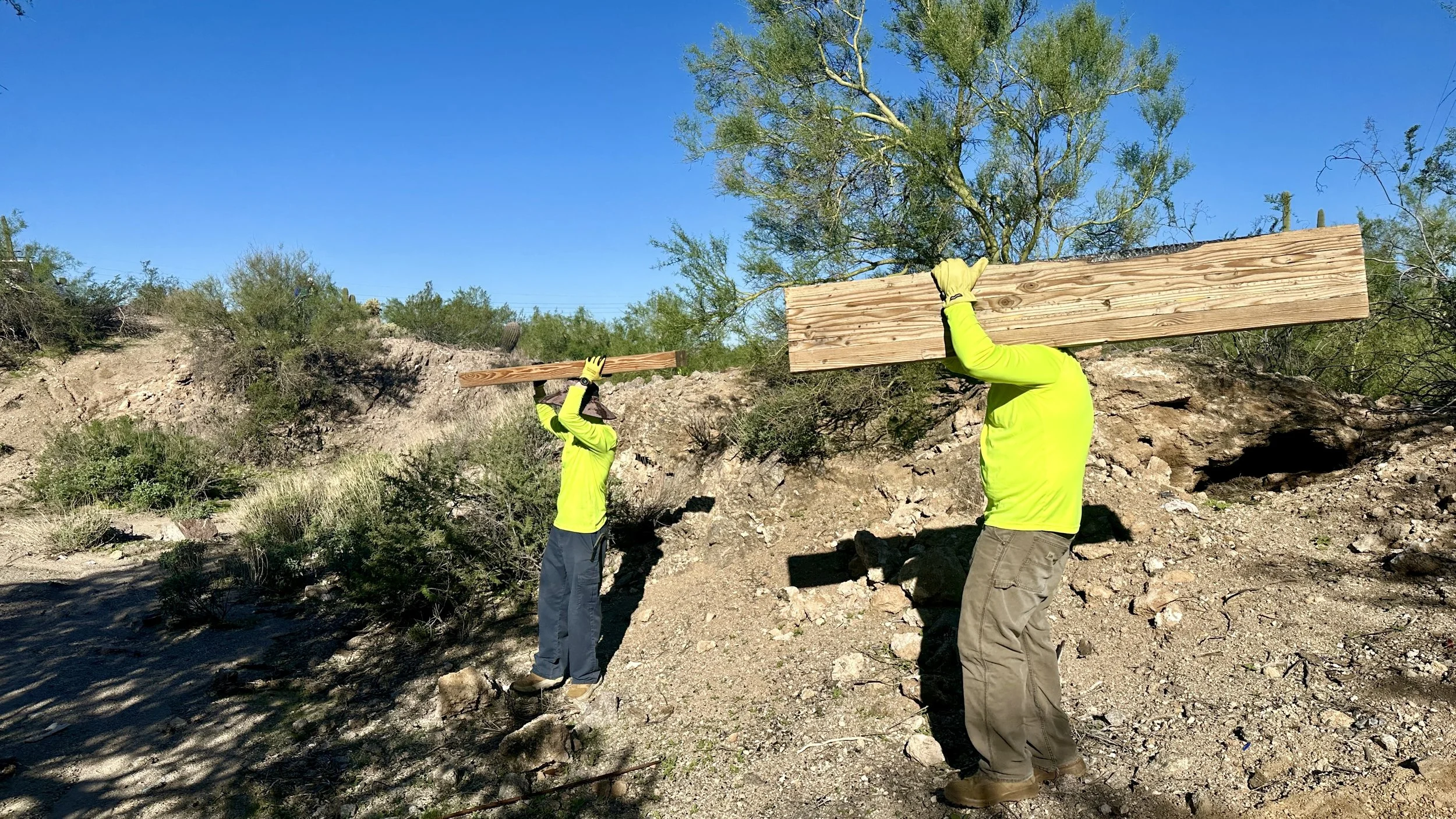 Below you will find photos of trash removal, graffiti removal, burn scar replanting and invasive grass removal projects on the Tonto National Forest.