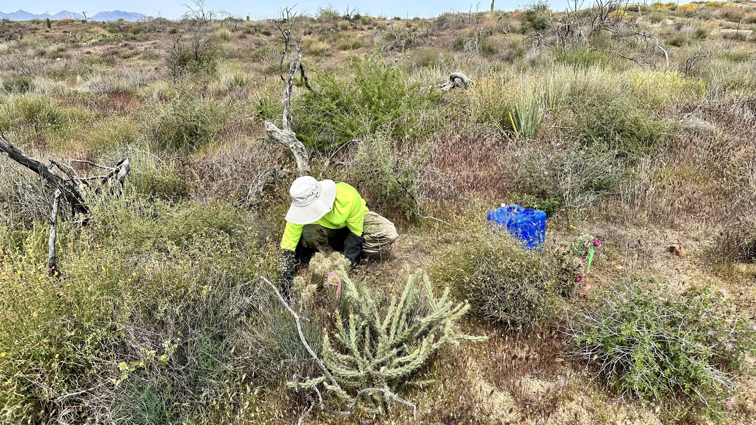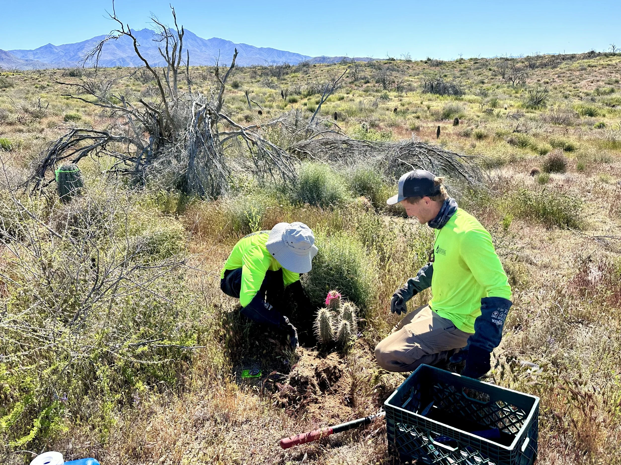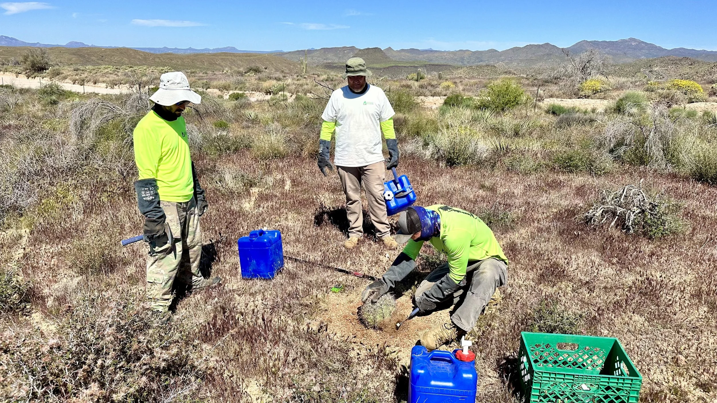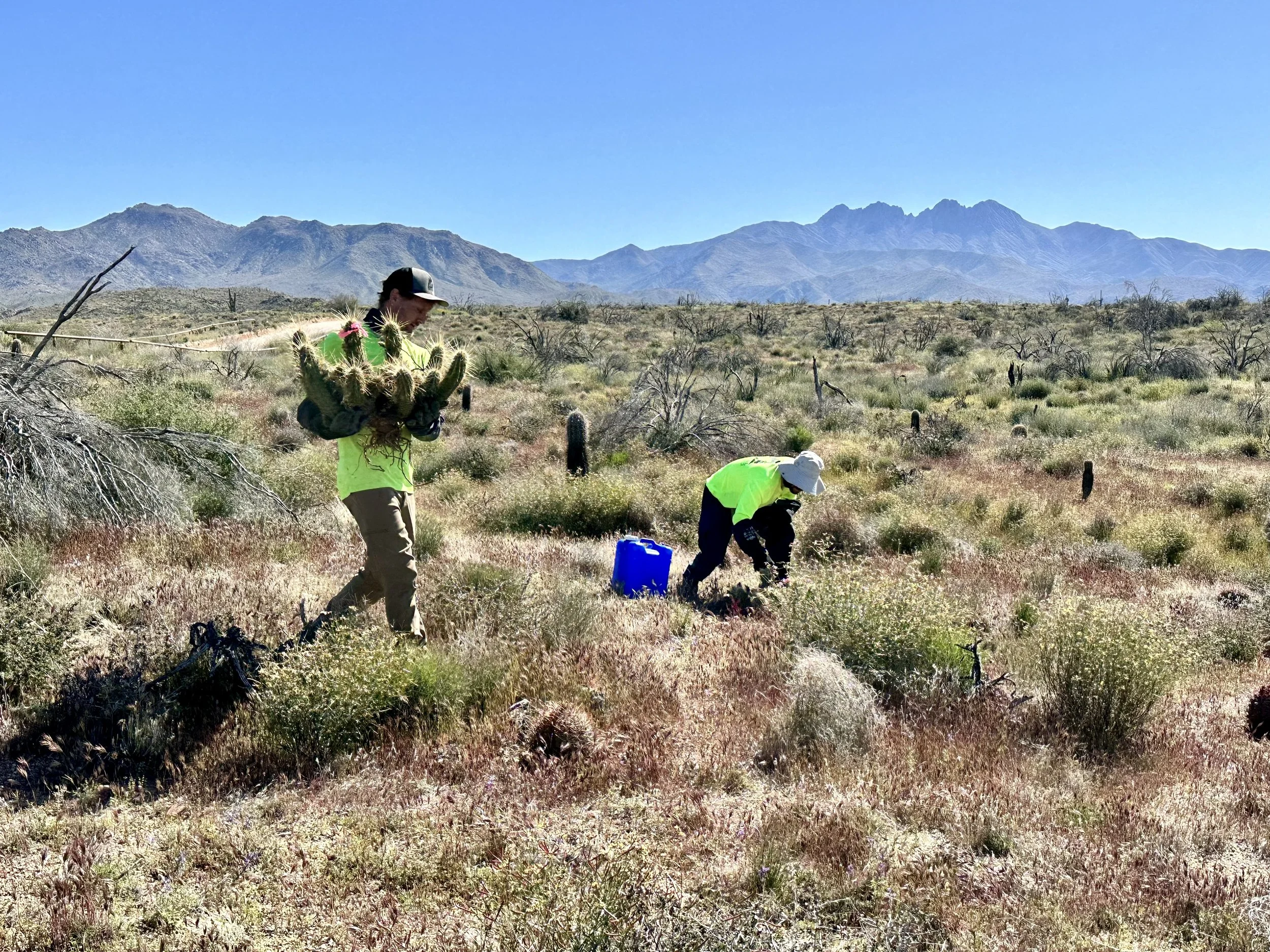 Replanting 393 saguaros, 272 hedgehog, 131 barrels, & 133 Cochemiea grahamii cacti in the bush fire burn scar at Four Peaks on the Tonto